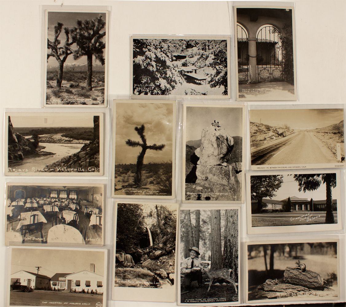 Lot of 13. Delano, Chula Vista, Victorville, Tehachapi winter, Mojave, Lebec. Cactus, rivers, animals, waterfalls, etc. RPCs. (Prag collection)