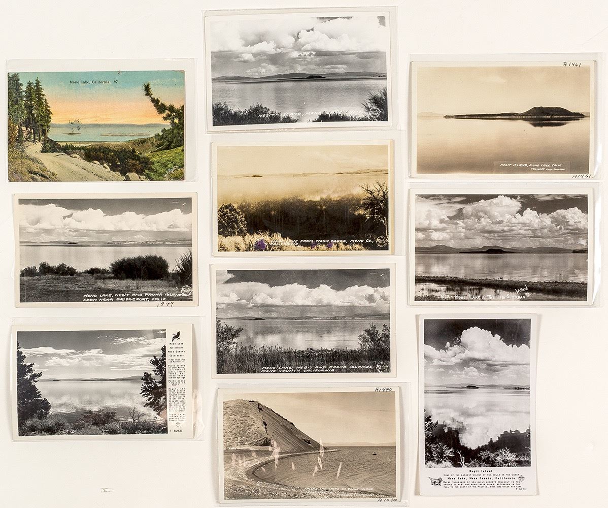 Nine RPC's of Mono Lake ("The Dead Sea of America") featuring islands: Negit Island, Paoha Island. One hand colored card. (Prag Collection) City: Mono Lake State: California Date: hwac# 30675