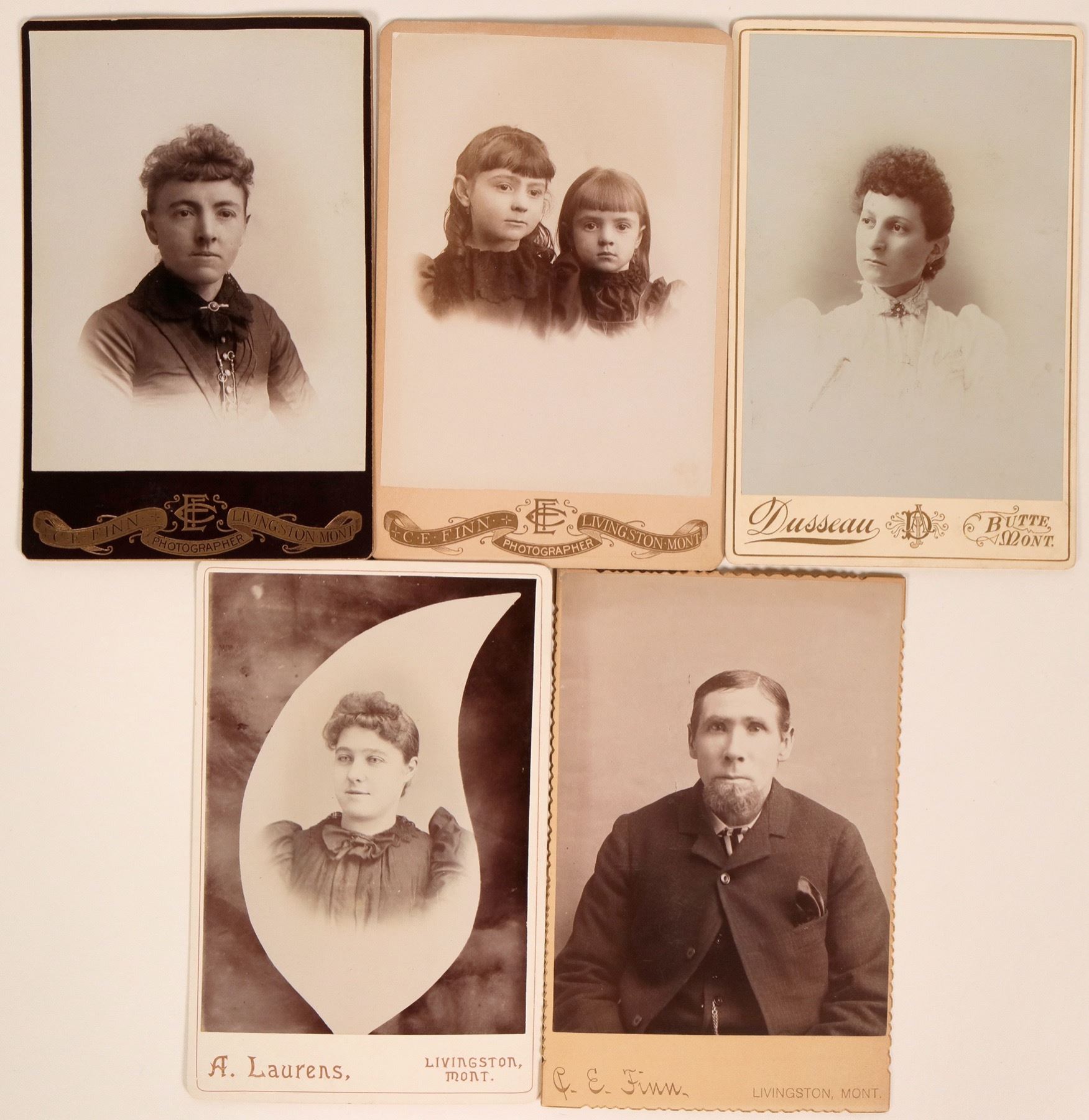 Very Nice group in excellent condition overall. Scalloped edge on one card. All adult portraits with one of young sisters.