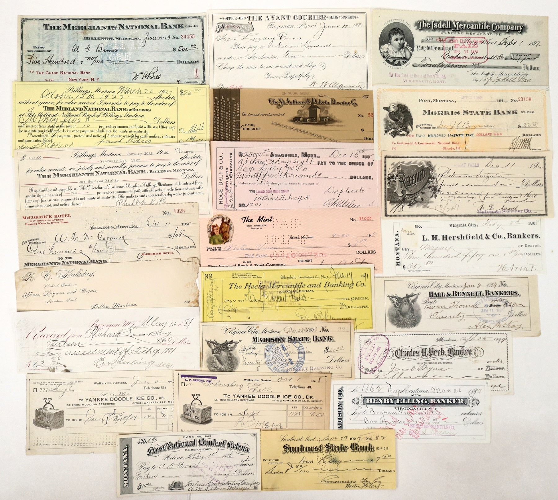 22 Montana checks, 1881-1927. Virginia City, Billings, Walkerville, Sunburst, Helena, Great Falls, Chinook etc.