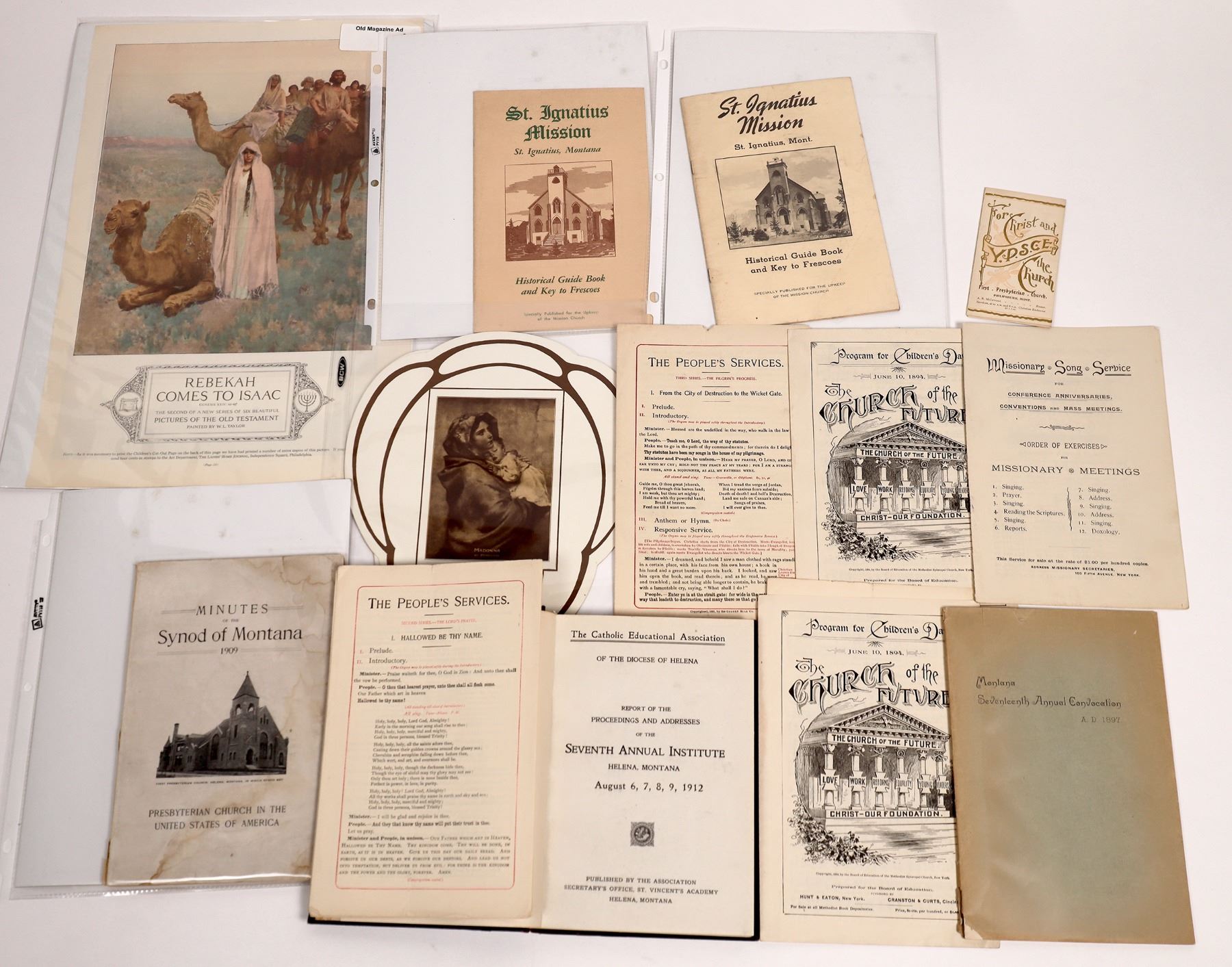 1912-1916 Montana Catholic Education Assoc. hardcover. About 12 other items, several from Montana c. 1897-1909.. Old magazine ad with camel. Montana Stuart Mackenzie Montana Ephemera Collection
