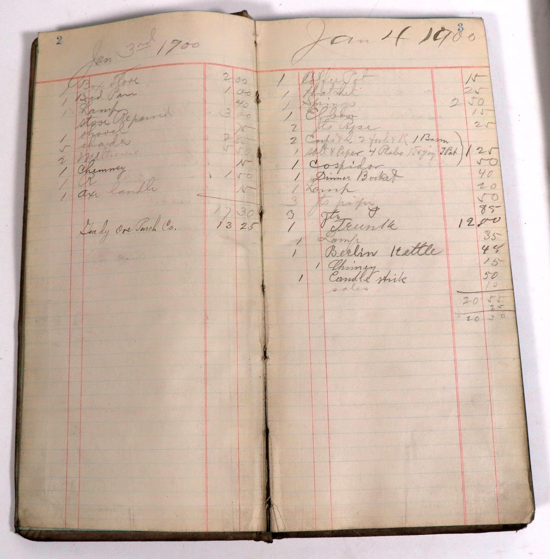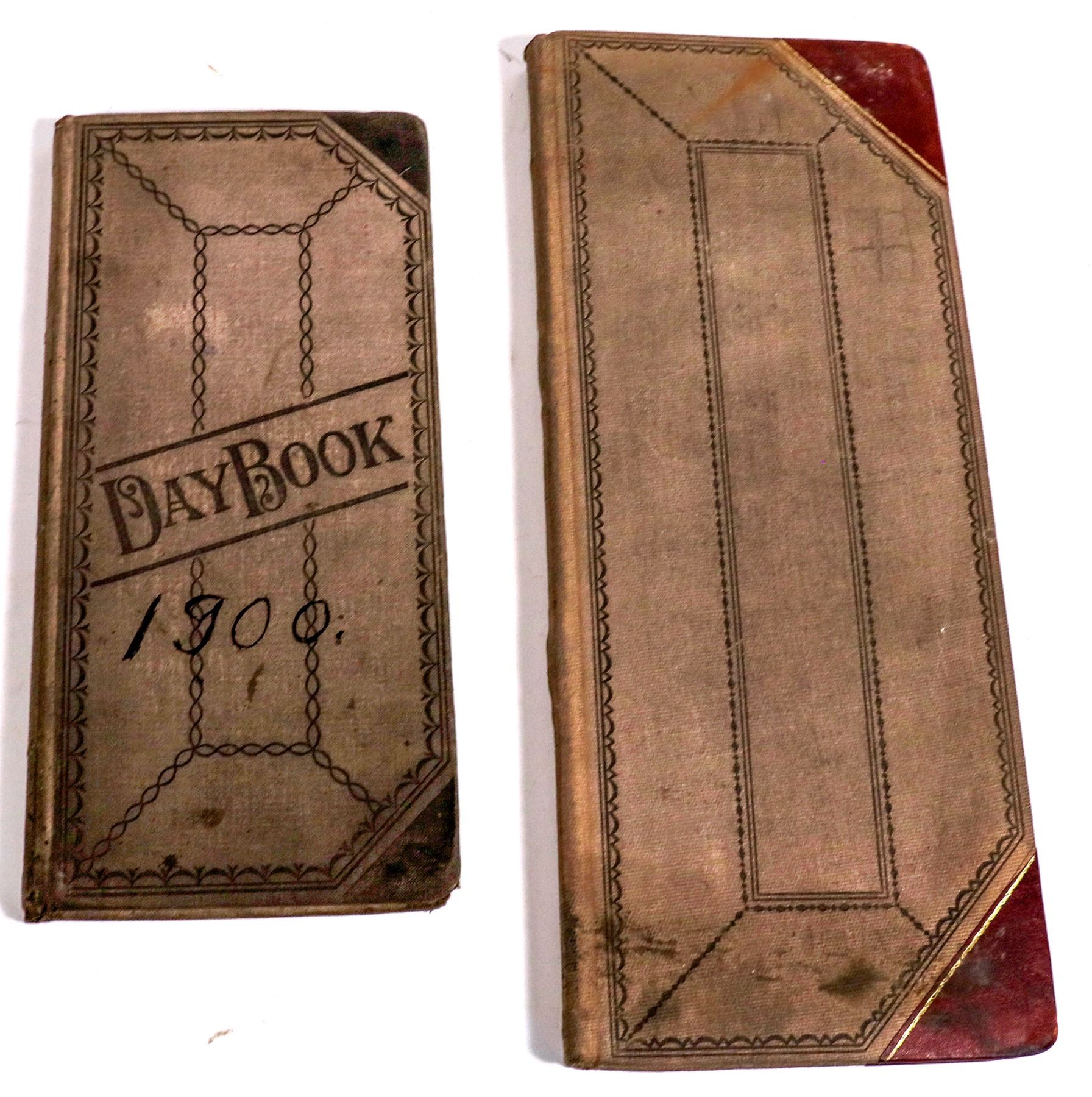 2 1900 Montana Day Books, unspecified merchant. 12x6" and 15.5x6.5". Montana