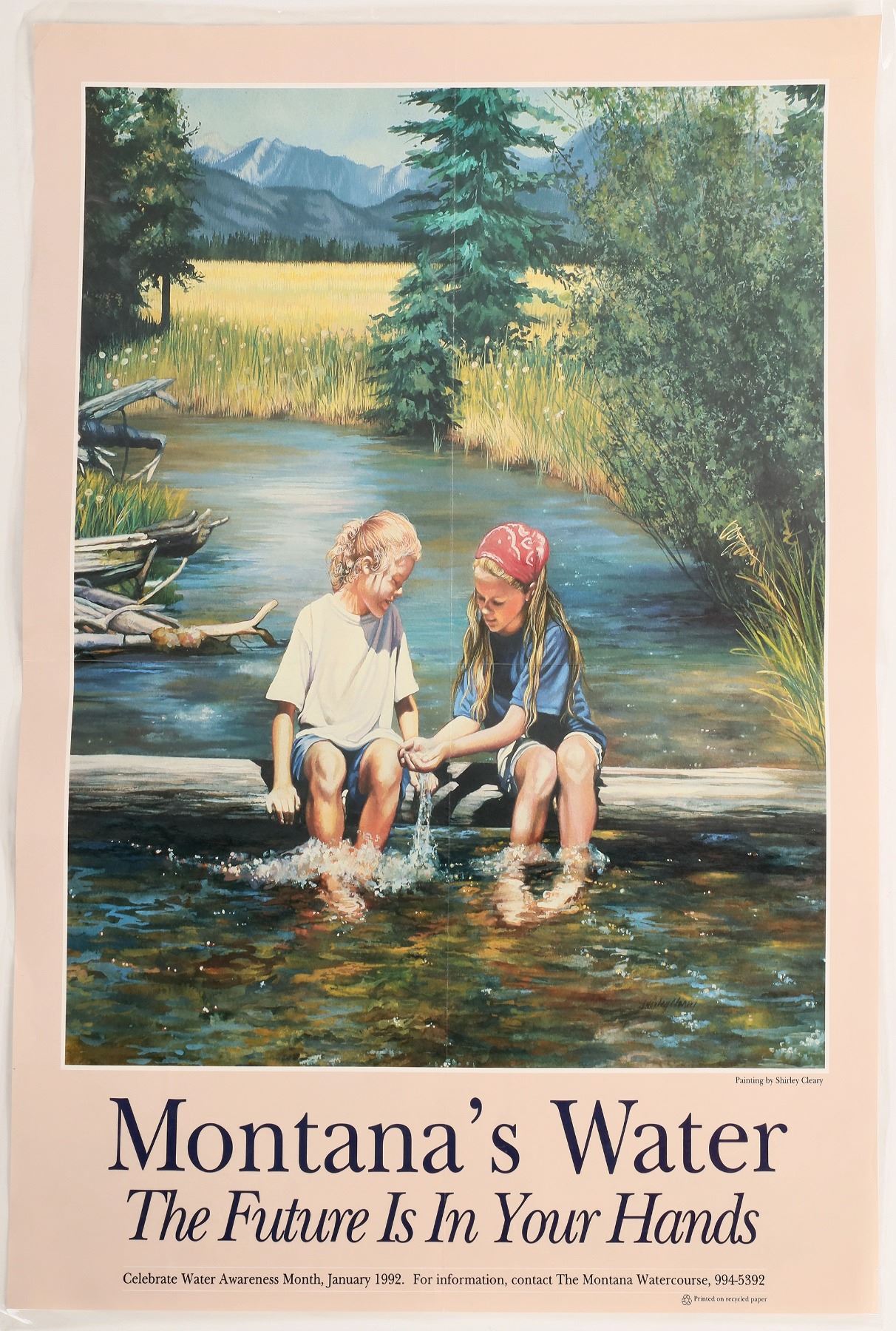Lot of miscellaneous Montana-related ephemera. Includes advertising prints from Butte and Chinook, advertising ink blotters from Great Falls (4 duplicates), a Water Awareness Month poster from the Montana Watercourse, and a photography book called Montana on My Mind. Various sizes, largest is 17.5 x 22.5 inches.