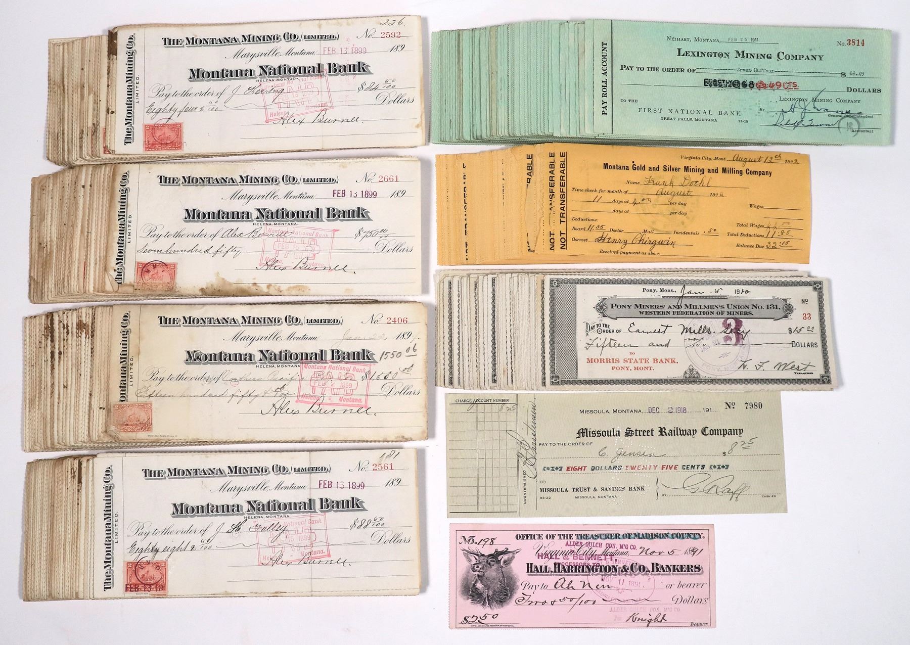 About 400 bulk sorted mining and railroad checks. Virginia City, Pony, Marysville, Neihart.