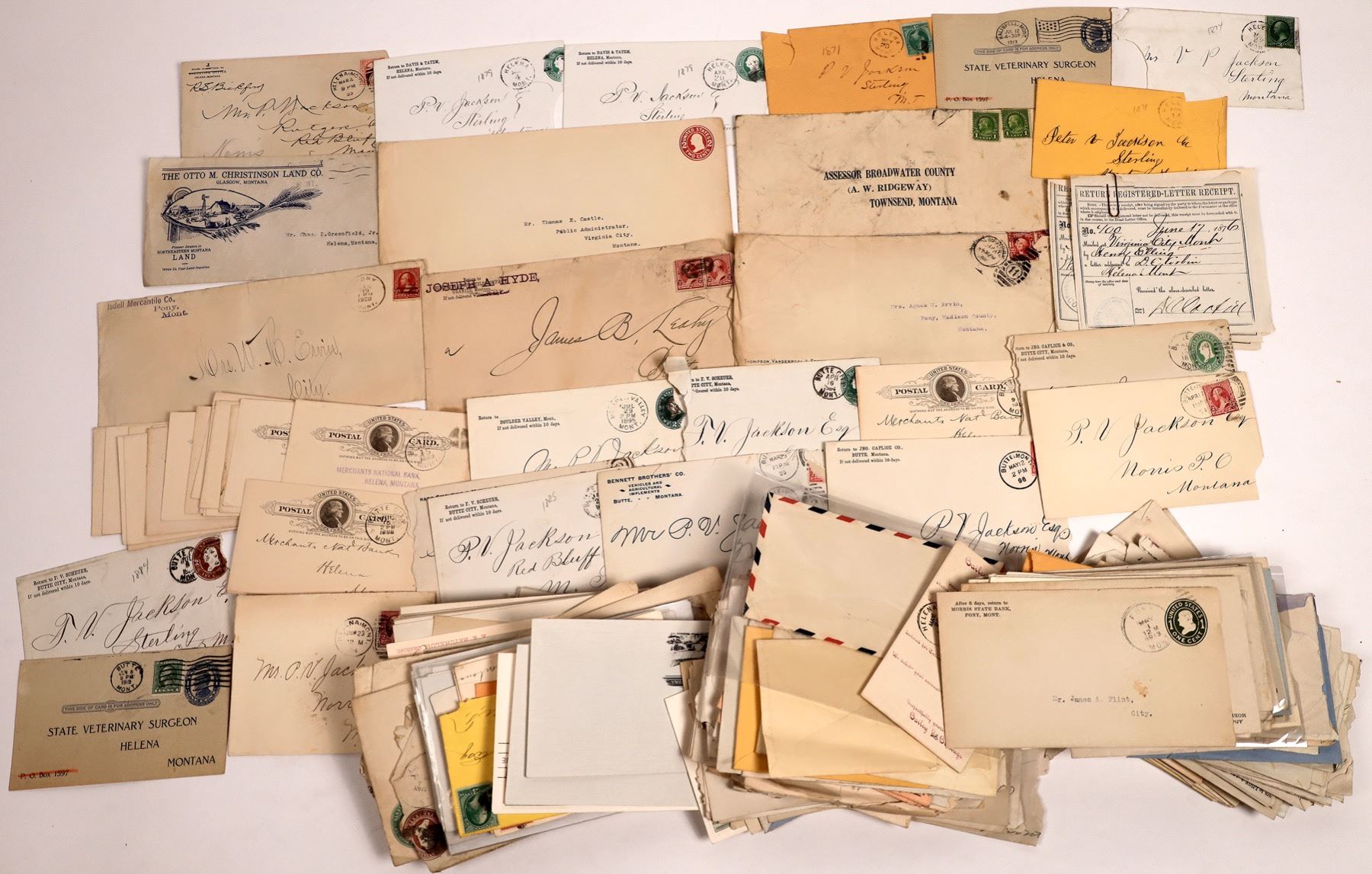 Unpicked raw lot of hundreds (200?) of Montana postal covers. Probably 30+ different cities; circa 1869-1910. Plenty of good stuff, all raw. State:Montana City: Date: Provenance: Stuart Mackenzie Montana Ephemera Collection