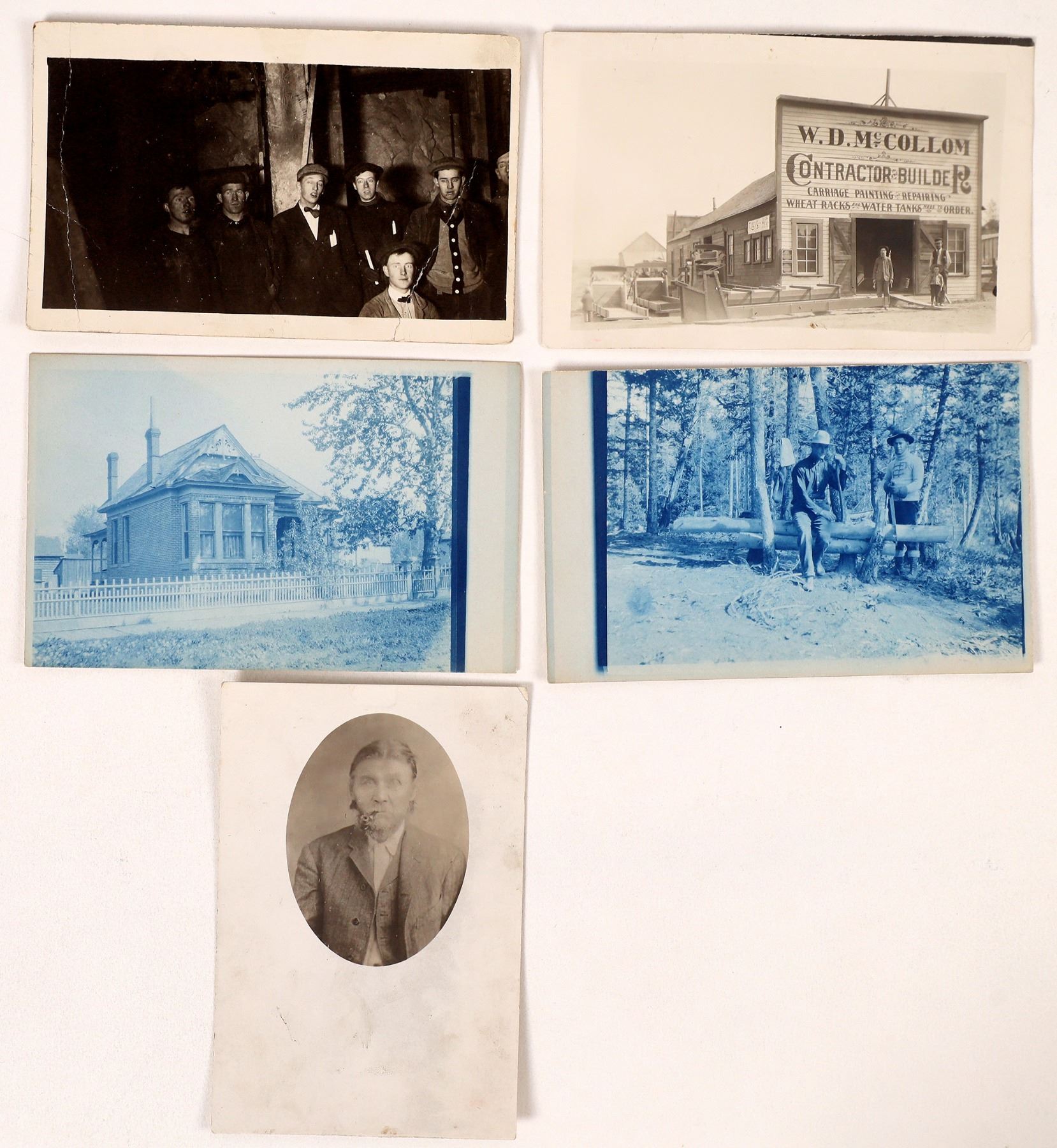 5 Montana RPC's-loggers, man portrait, house, contractor building, group of men with creases.