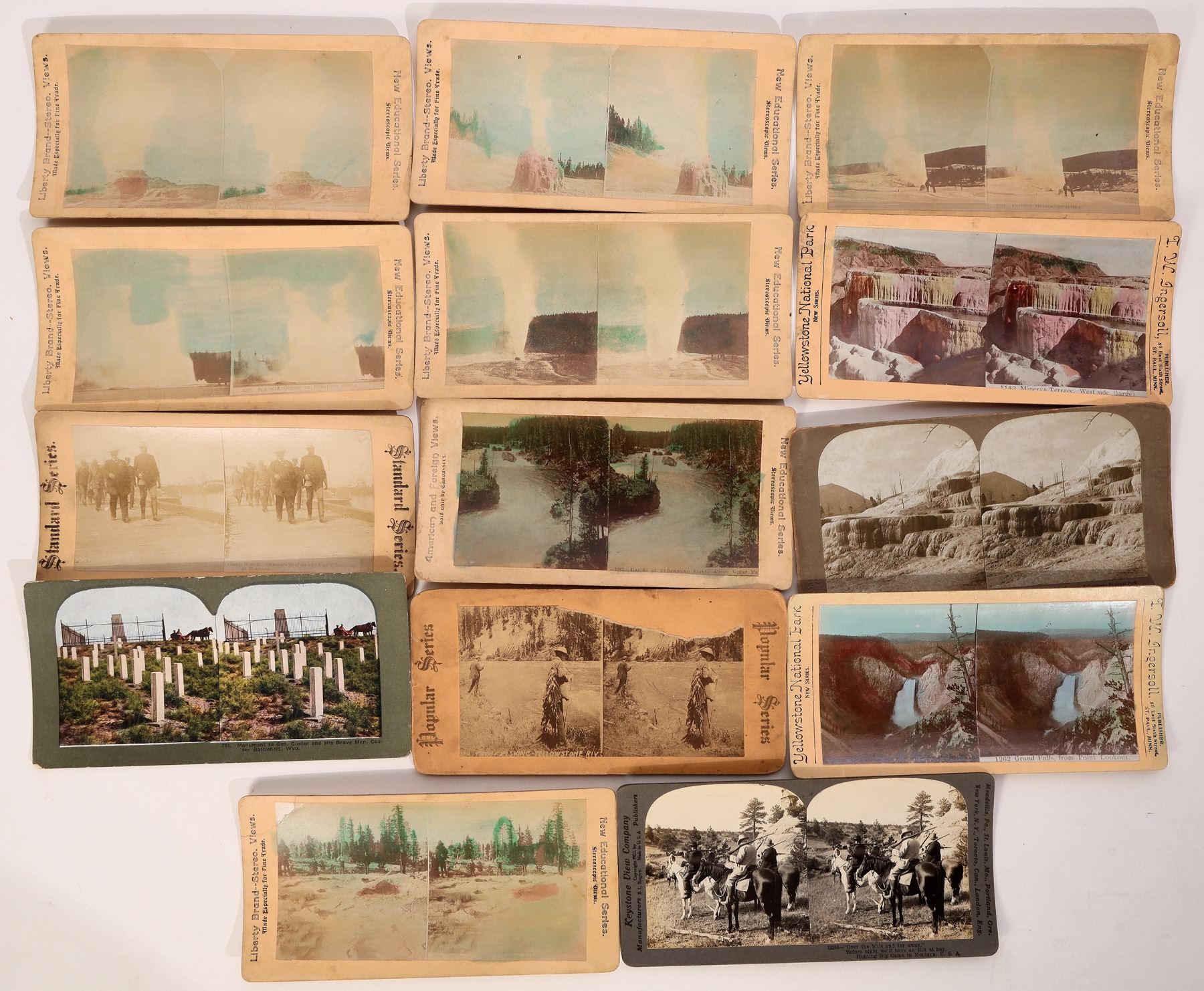 14 Montana stereoviews. Hunting, Grand Falls, trout fishing, Yellowstone, geysers etc. Some with low contrast, please inspect. [ Montana