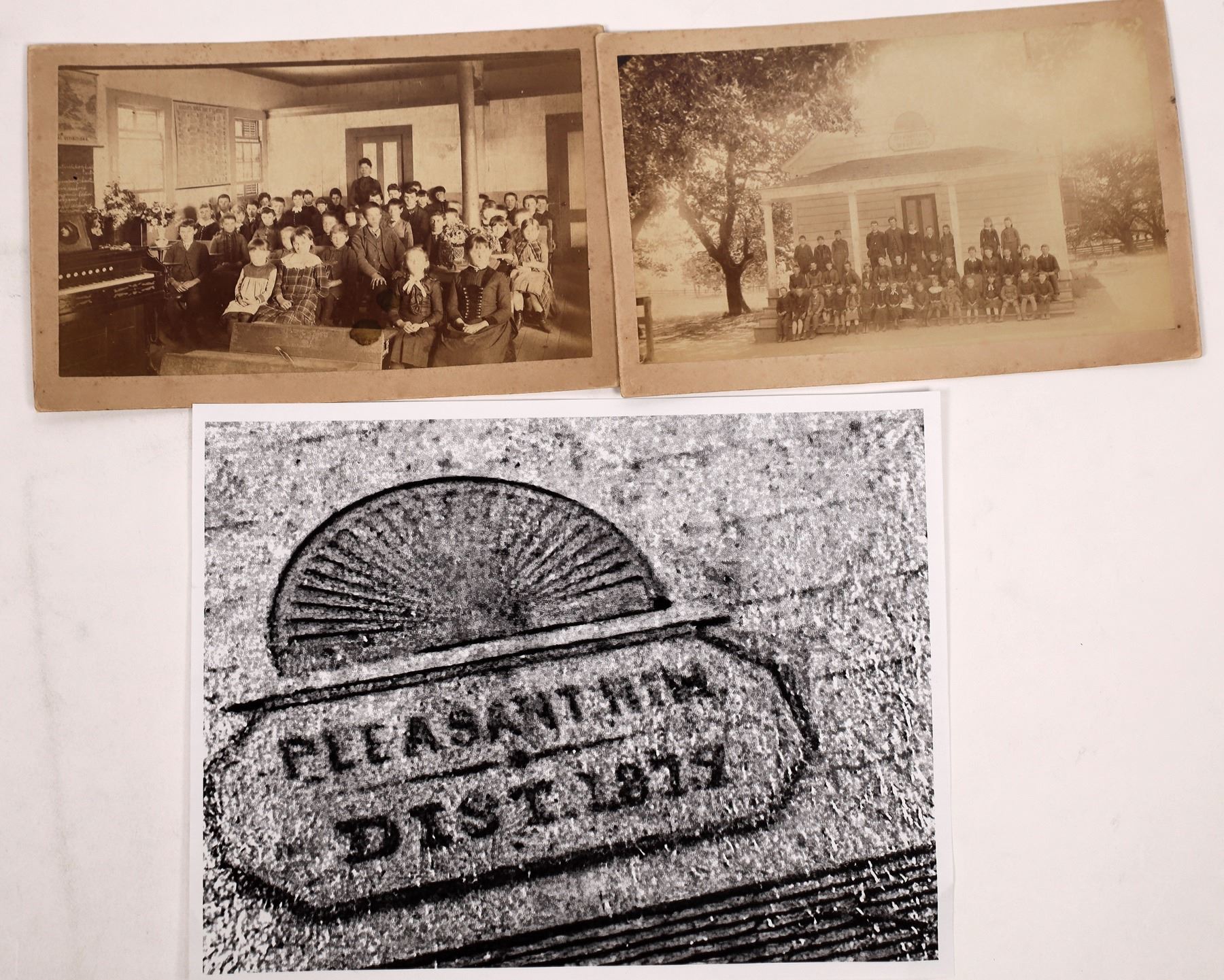 2 Montana school photos, c. 1880's. No photographer noted. Pleasant ???, Dist. 1879. Fine + condition. 4.5x7.75". Montana Stuart Mackenzie Montana Ephemera Collection