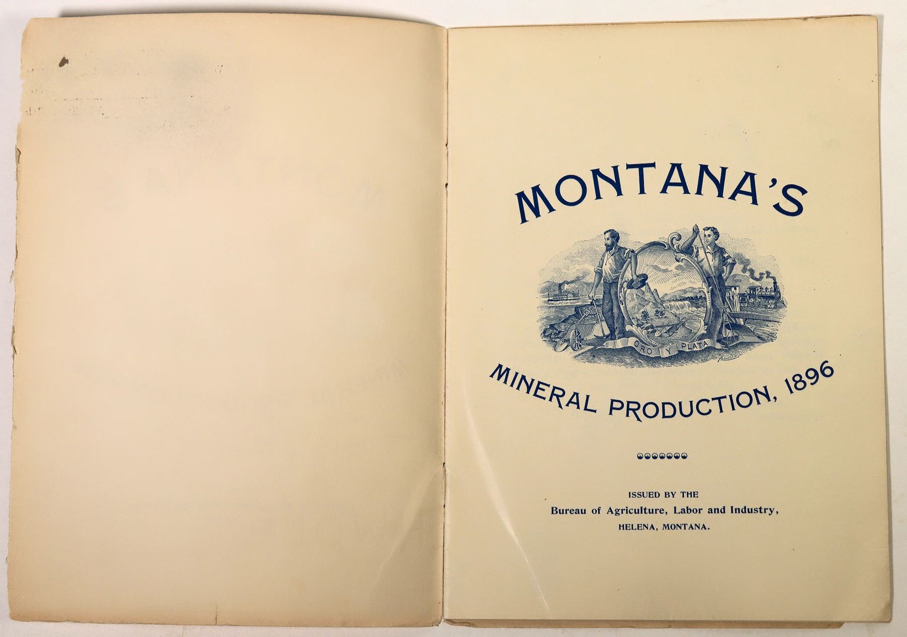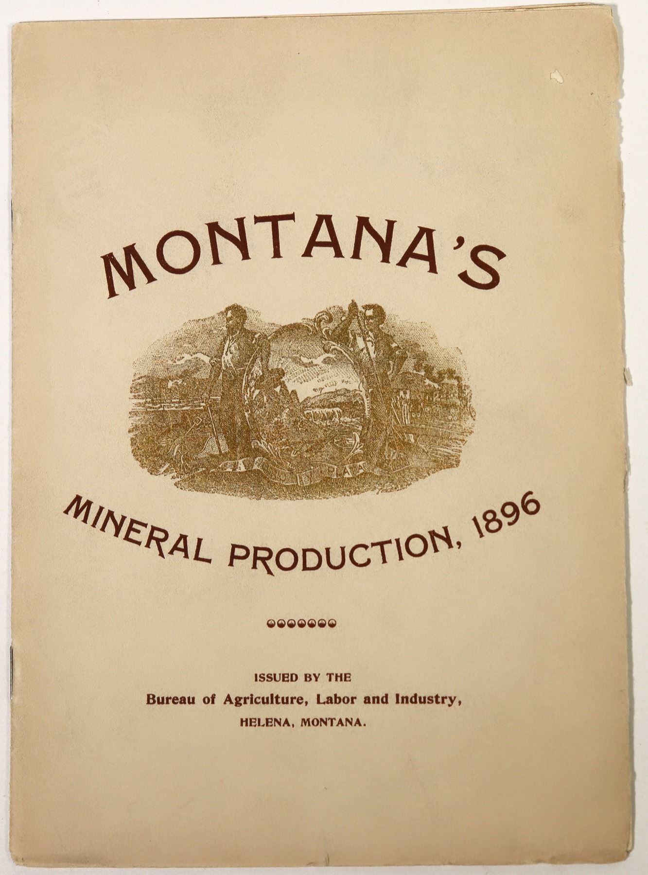 Pamphlet issued by the Bureau of Agriculture, Labor and Industry, Helena, Montana. Sixteen page report on Montana's mineral production in 1896. City: State:Montana Date:1896