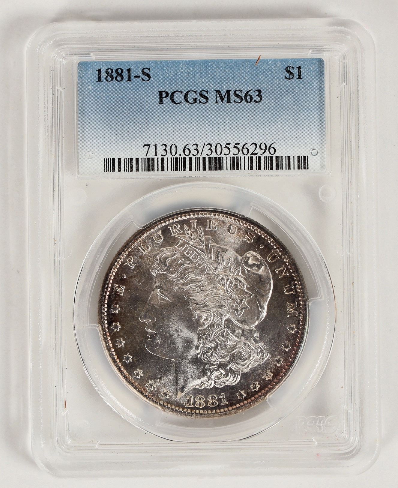 PCGS graded MS 63. Peripheral toning accents a beautiful coin.