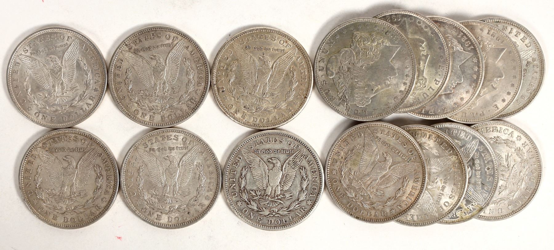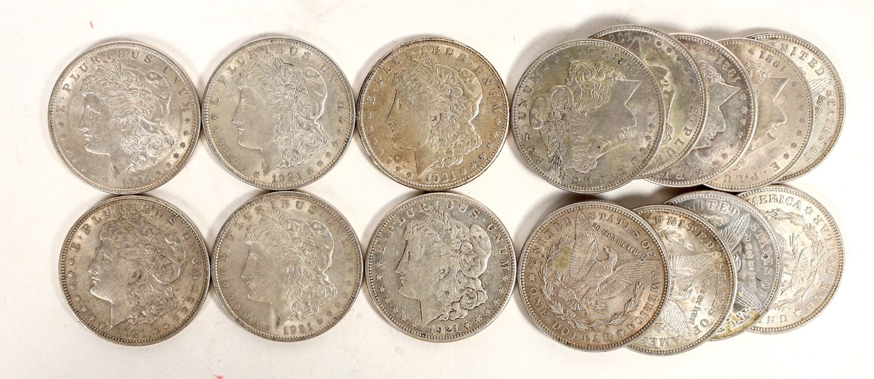 Fifteen Morgan dollars dated 1921. Mostly XF-AU+.