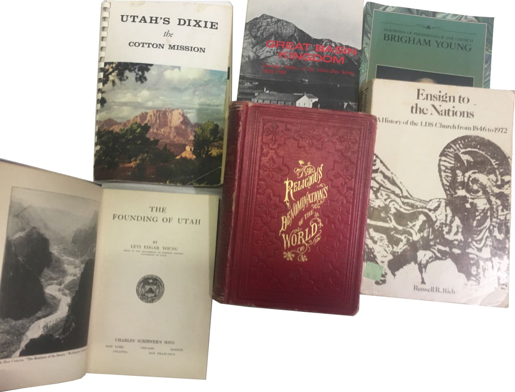 Utahs Dixie the Cotton Mission, Great Basin Kingdom by Arrington, Founder of Utah by Young, Teachings of Presidents of the Church by Young, Ensign to the Nations by Rich, Religious Denomintions of the World