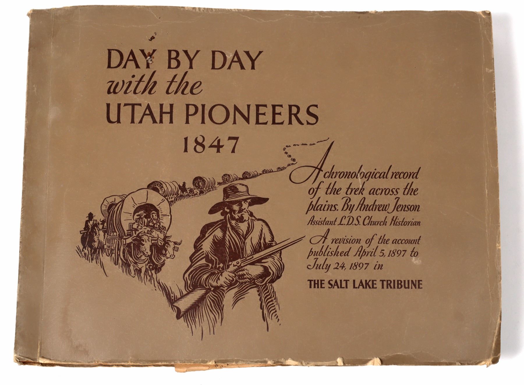 Rare Day by Day with the Utah Pioneers 1847. A chronological record of the trek across the plains in The Salt Lake Tribune, by Andrew Jenson. A revision of the account published April 5, 1897 to July 24, 1897. Scrap book format.