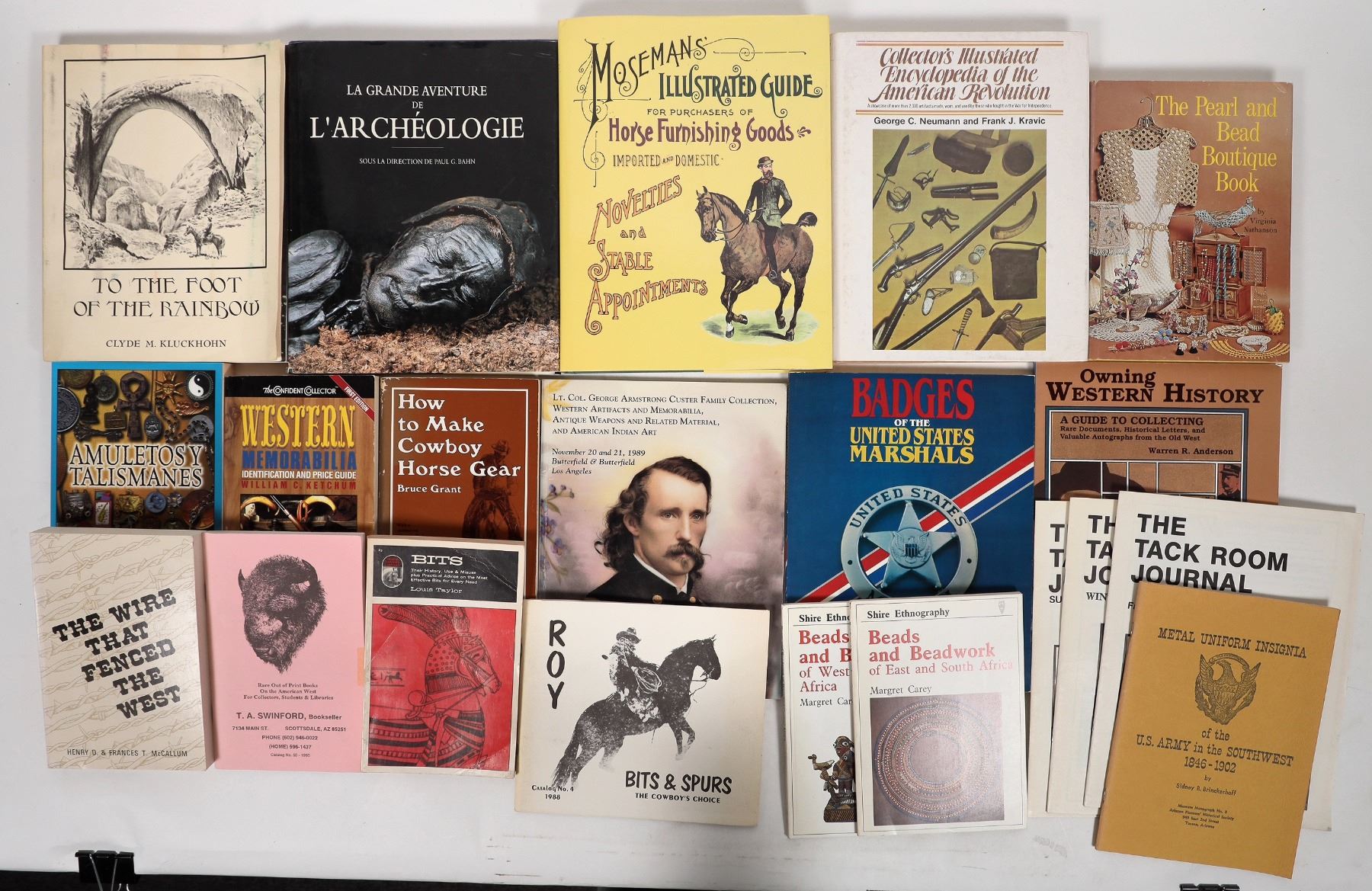 Amuletosy Talismannes, Western Memorabilia, Cowboy Horse Gear, Barb Wire, American Revolution, Horse Furnishing Goods, Bits, Custer, Western History, Bits & Spurs, Badges of US Marshalls, US Army Insignias, Tack, Pearl and Bead etc. A few non Western.