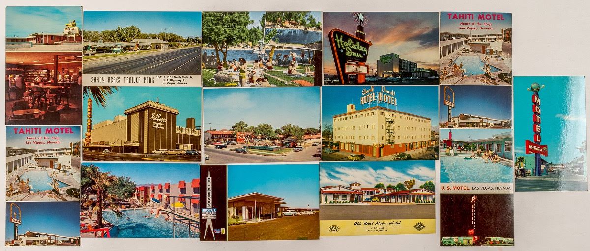 Lot of 14 color postcards, all different. Shady Acres Trailer Park, Tahiti Motel, Westwind Motel and many others. City: Las Vegas State: Nevada Date: ID# 44665