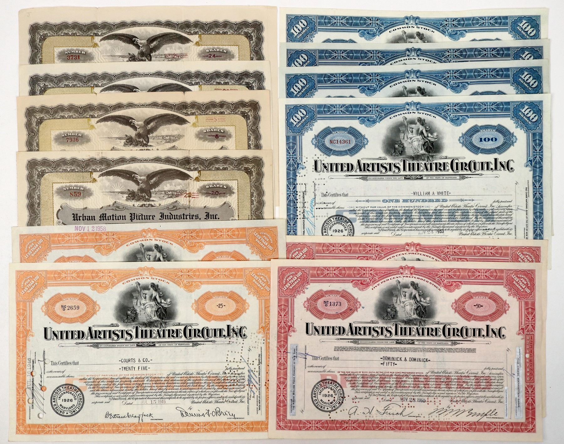 4x 1920-21 Urban Motion Picture Industries-crease tears and 1 has verso tape repair. United Artists Theatre Group, 1938-60-2x orange, 2x mauve, 4x blue.
