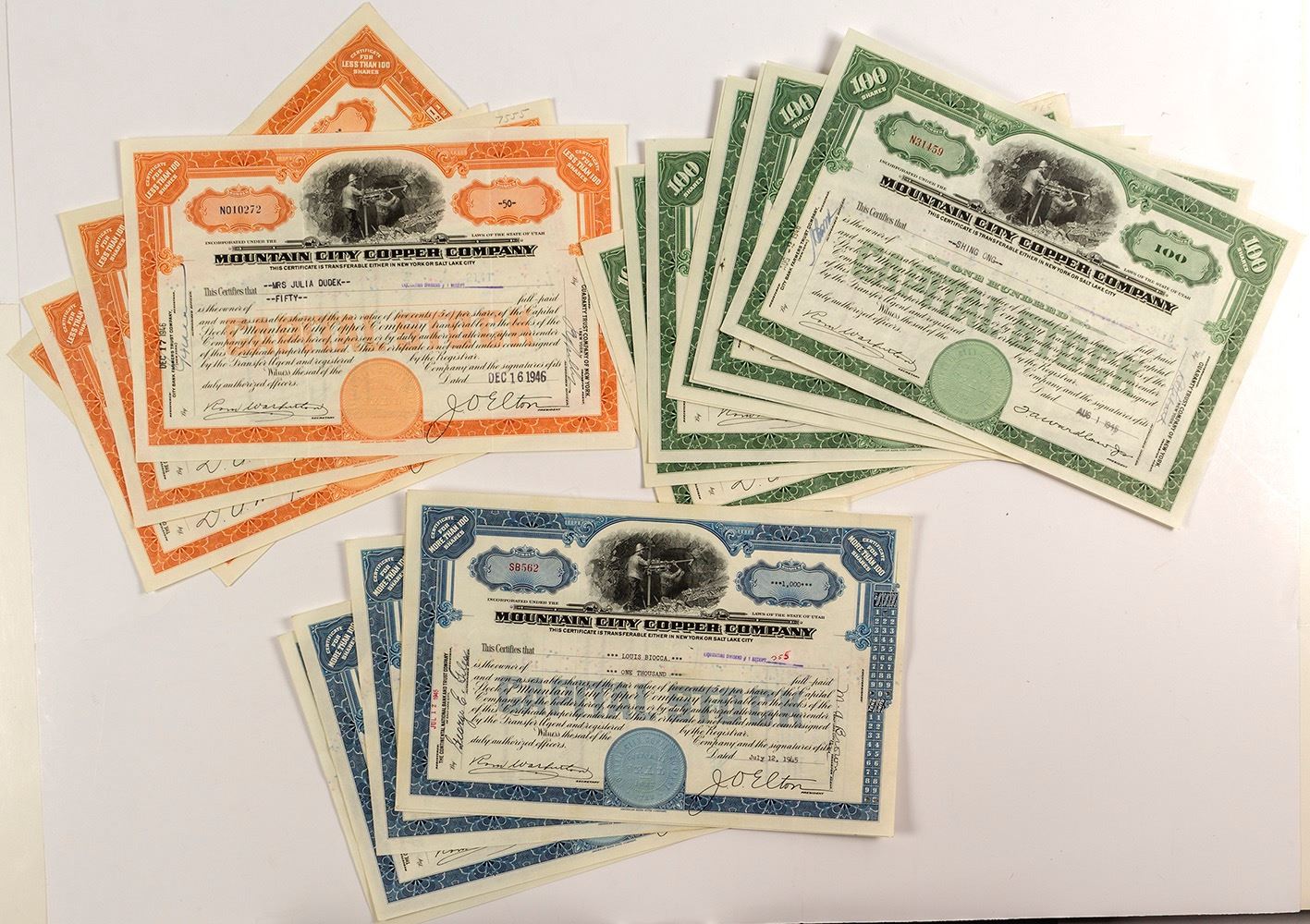 19 issued 1939-1946, orange, green and blue. 7" x 11". Site of a mining accident in 1936 where 6 miners died from poor breathing conditions. Mine located in Elko County. City: Mountain City State: Nevada Date: 1939 HWAC # 52204