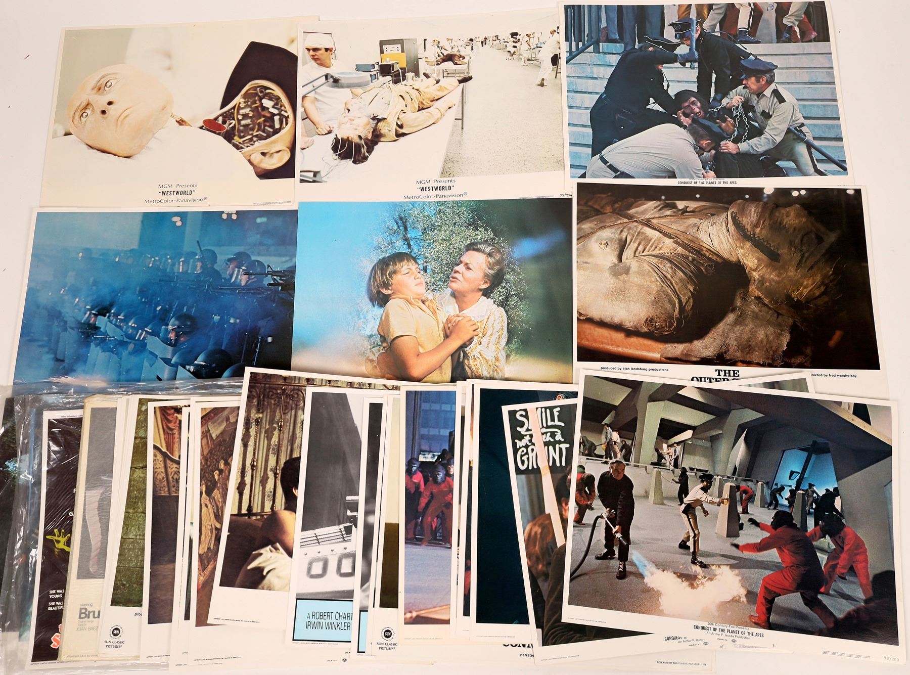About 50 (+/-) lobby cards in a Science Fiction theme from the 1970s. Some duplication. Titles include: The Outer Space Connection, Westworld, the Sentinel, Silent Running, The Other, and Conquest of the Planet of the Apes.