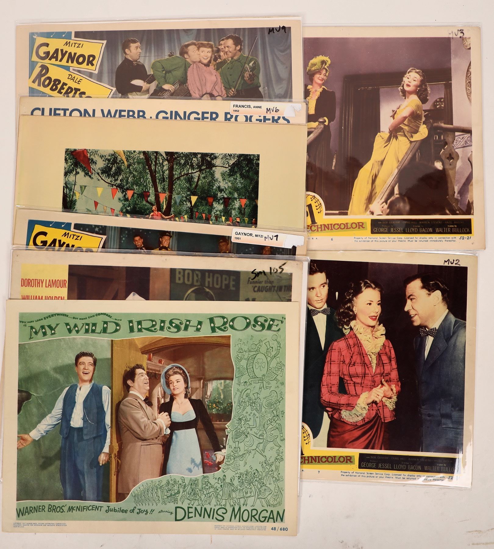 Lobby cards (9), from lesser known Hollywood musicals, including The I Don't Care Girl (1953) starring Mitzi Gaynor and David Wayne, Golden Girl (1951) with Mitzi Gaynor and Dale Robertson, The Fleet's In (1942) starring Dorothy Lamour, William Holden &Eddie Bracken. All in good condition. Please see photos for more details.