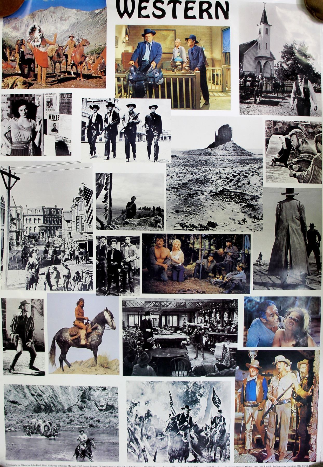 Great movie poster, showing many clips of some of the greatest western movies ever made. Including..." Gunfight At The OK Corral", El Dorado , Gun Hill, High Noon...and " The River Of No Return, with Marilyn Monroe !! Plus a lot more. Poster is in French and English. Printed in Paris in 1994. Really great condition, 39 1/2" tall x 27 1/2" wide, and ready to be hung on your wall, oh...yea...!! Pick you own frame, black is really good. ( RH).
