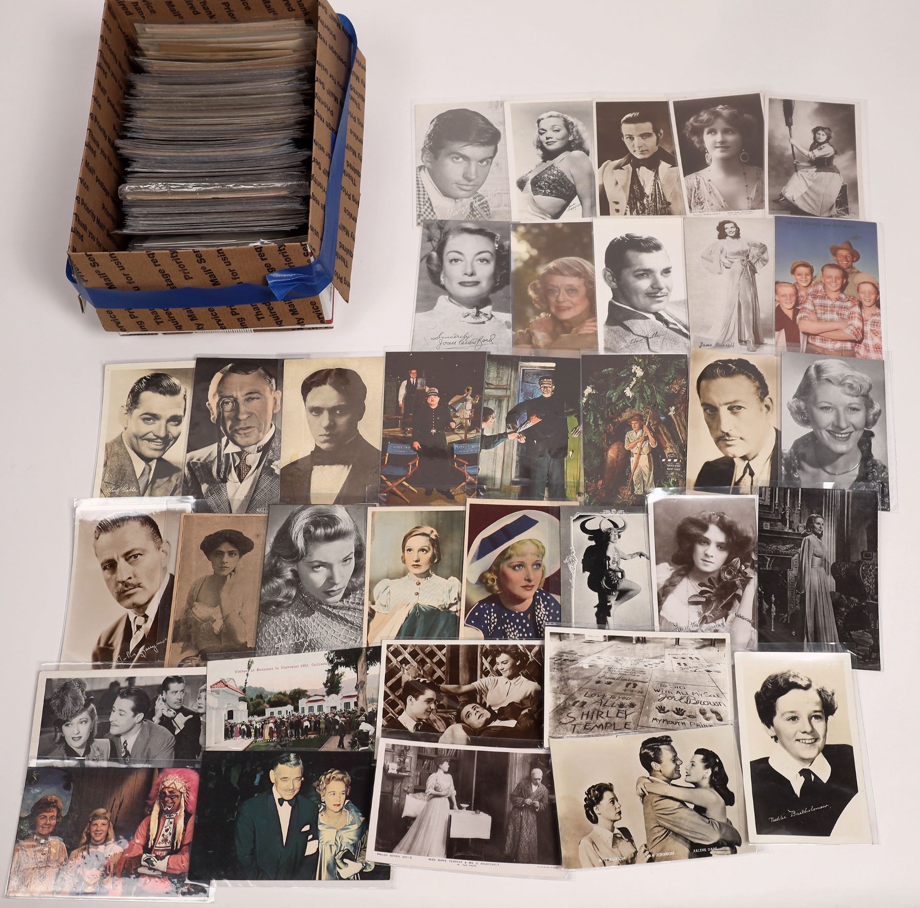 Lot of over 340 vintage post cards of movie stars. Actors and actresses from the silent film era through "Rebel Without a Cause." Some from the Movieland Wax Museum. Young Charlie Chaplin portraits. Black and white and color. State: City: Date: Provenance: Ken Prag Collection