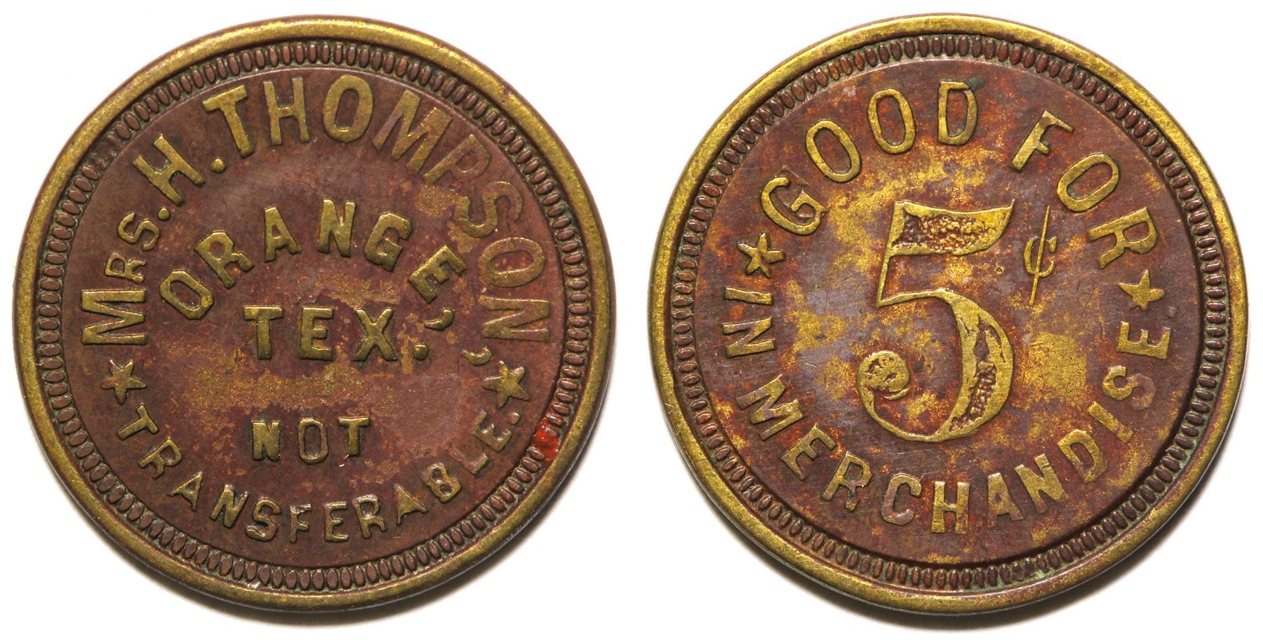 GF 5c IM non transferable token issued by a Lady. Date: Location: Orange, Texas HWAC# 75317