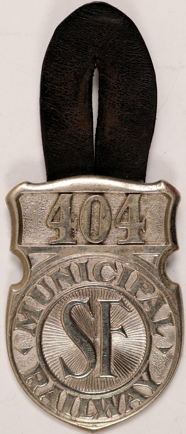 SF Municipal Railway Badge #404 to be worn on button. 63mm 45mm