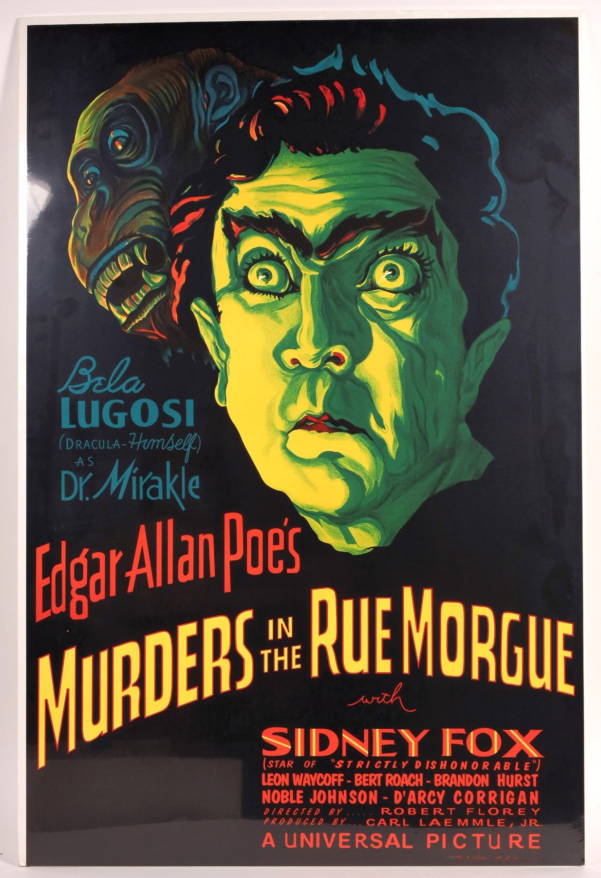 High quality lobby poster reprints c. 2000. Murders in the Rue Morgue(144 in lower right corner) and The Outlaw(71 in lower right corner). 41x27".