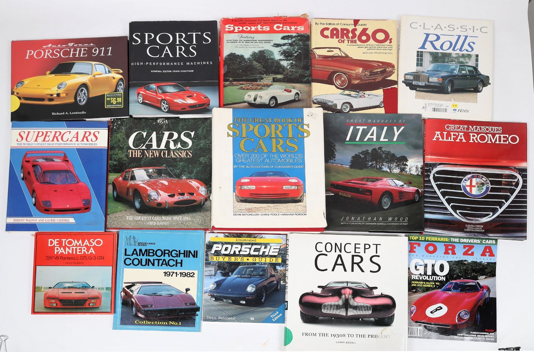 Library of about 15 books related to muscle, high-performance, and specialty cars. Great variety of books for high-end car enthusiasts. Most are large, coffee table books. Various sizes, average is about 11 x 12.25 inches. Overall good condition, some dust jackets are damaged.