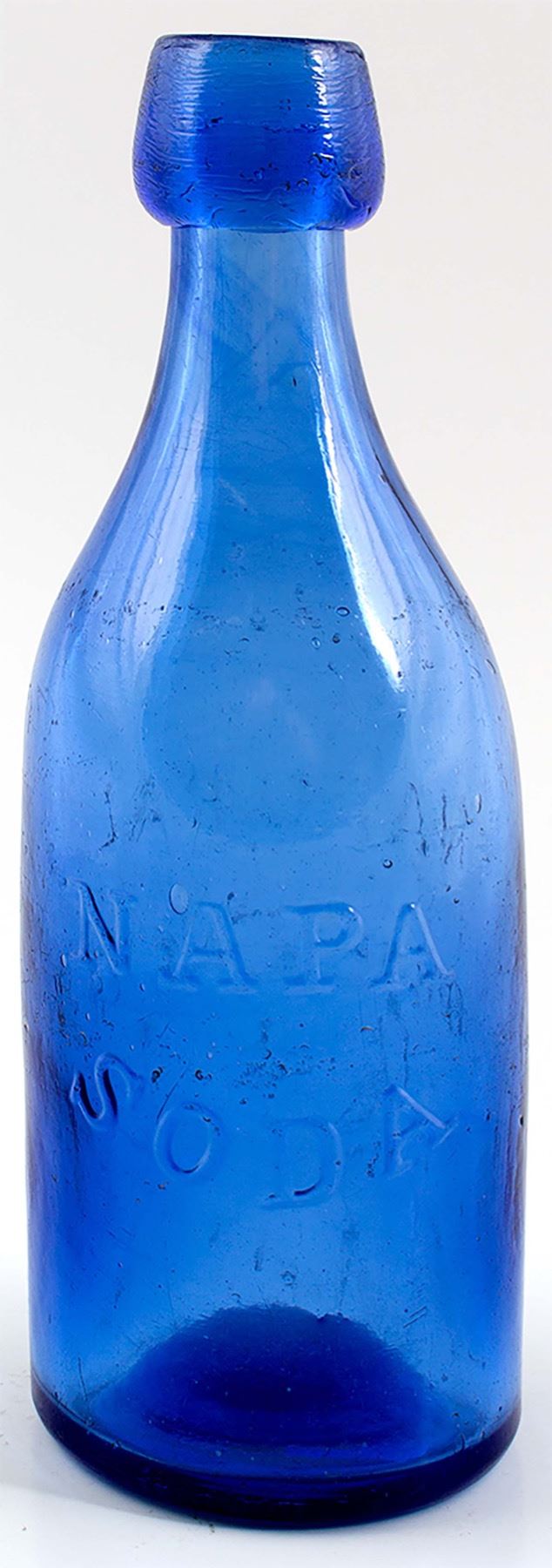 Napa / Soda ( ad) ( Variant #2) // Reverse : Natural / Mineral Water // Beautiful, light royal blue colorization. Blob top soda bottle . 7 1/2", slightly oversize, applied top.Clean and shiny, like a brand new bottle. Pro cleaned, with wonderful results. A few , ultra minute scratches remaining. Very nice looking , and well balanced design. Just one of many, of the wonderful soda bottles , in this sale. (RH). State: California City: San Francisco Date: 1861-1873 HWAC# 30204