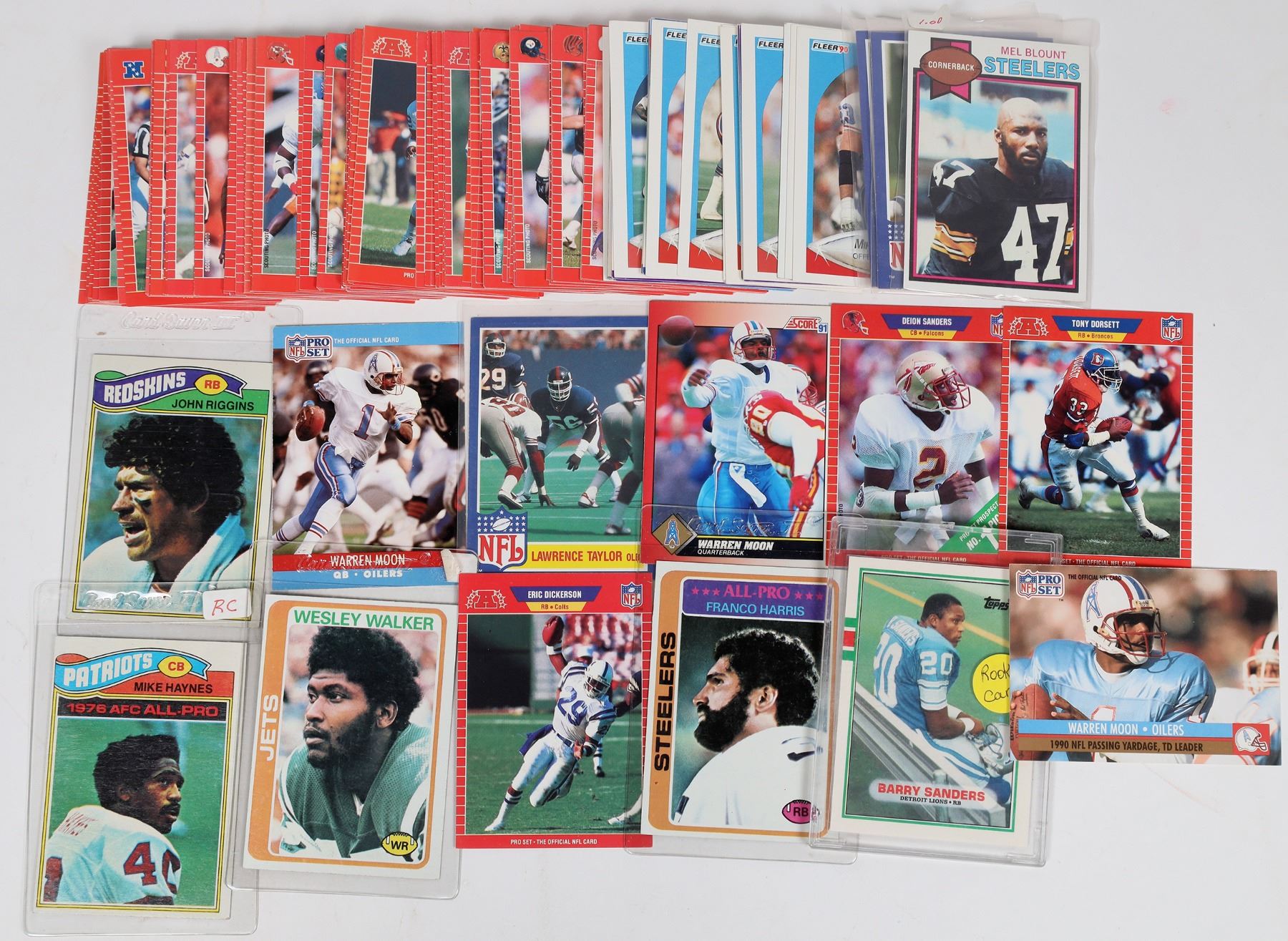 Lot of 150. Premier card is a very nice Barry Sanders! Includes Warren Moon, John Riggins, Lawrence Taylor, Franco Harris, Wesley Walker, Eric Dickerson, Tony Dorsett.