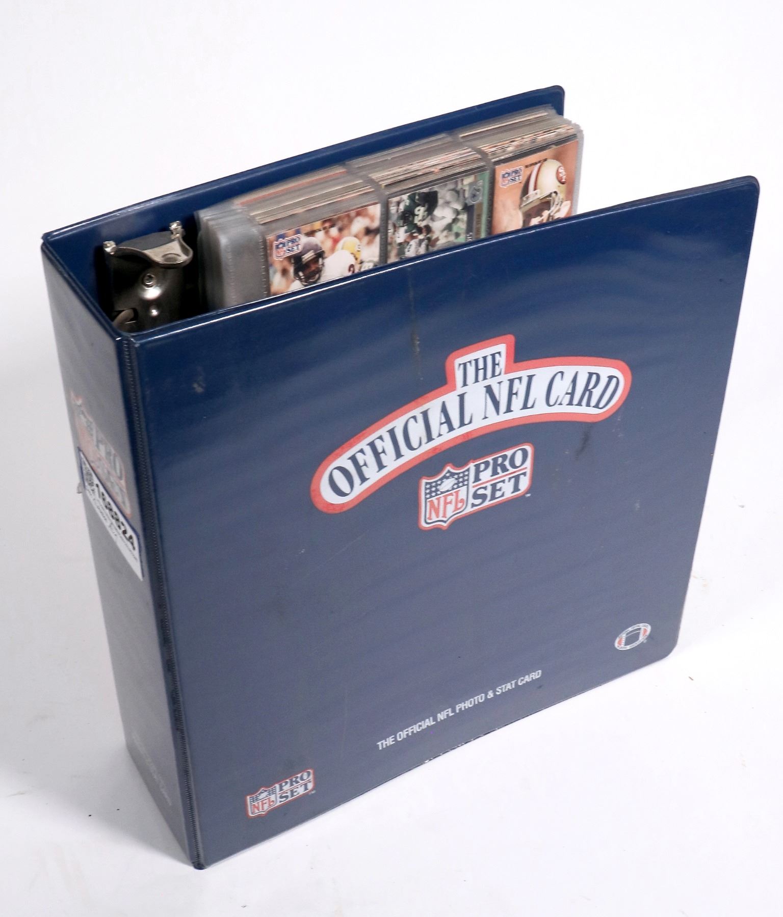 452 ProSet NFL 1991 football cards in ProSet binder. Many stars-Joe Montana, Barry Sanders, Jerry Rice, Roger Craig, Dan Marino, Jeff Hostetler, Deion Sanders etc.