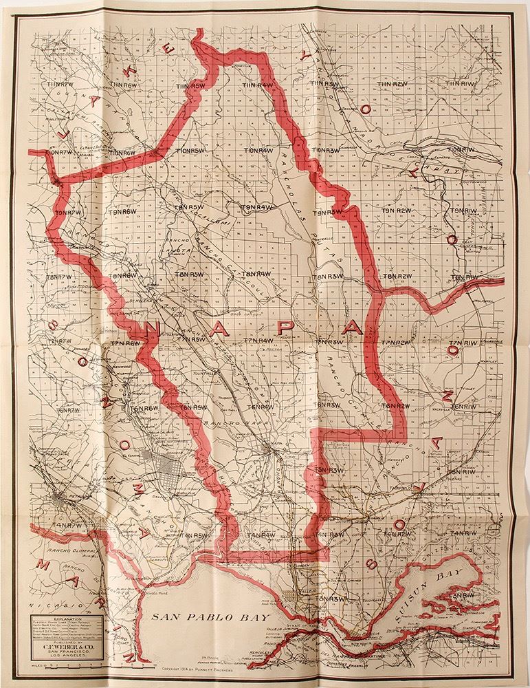 Napa County CA Map, 1914, C. F. Weber & Co., SF CA, folded, 20" x 27". 2 small holes on folds, 4" vertical fold tear Date: 1914 Location: Napa, California HWAC# 571924