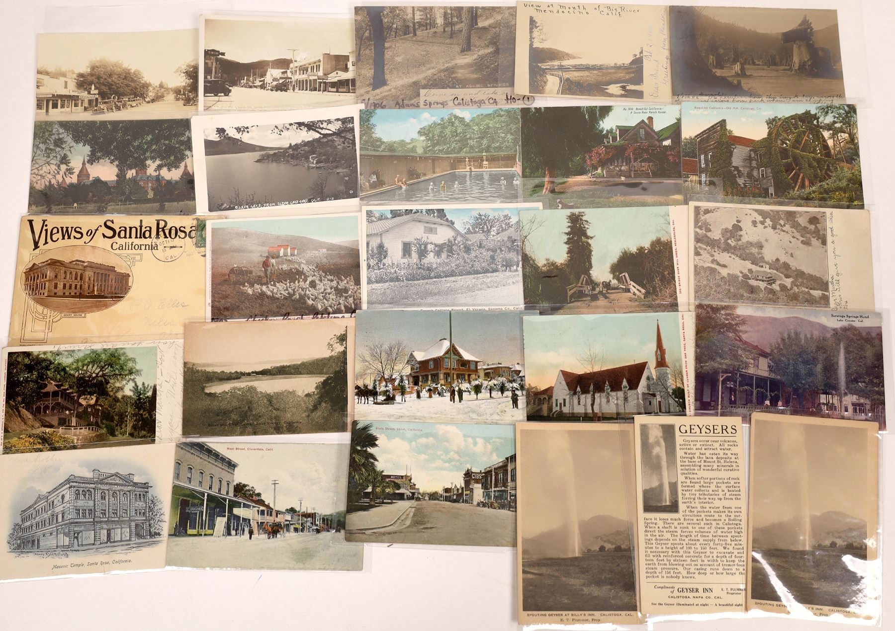 A variety of cards from the wine region of California, including four older RPC's, six pioneer cards, and an RPC with white border, among others. Scenes include Calistoga, Santa Rosa, Ukiah, Petaluma and more Some are blank, some are used. Please see photos for more detail and condition.