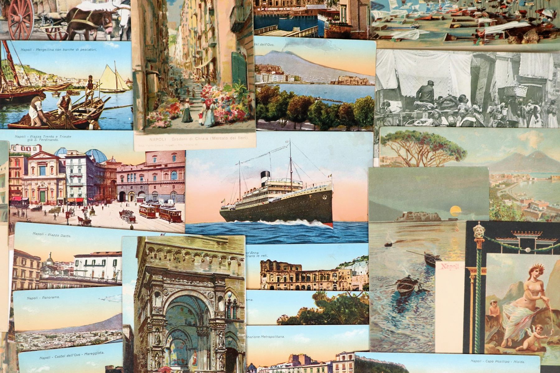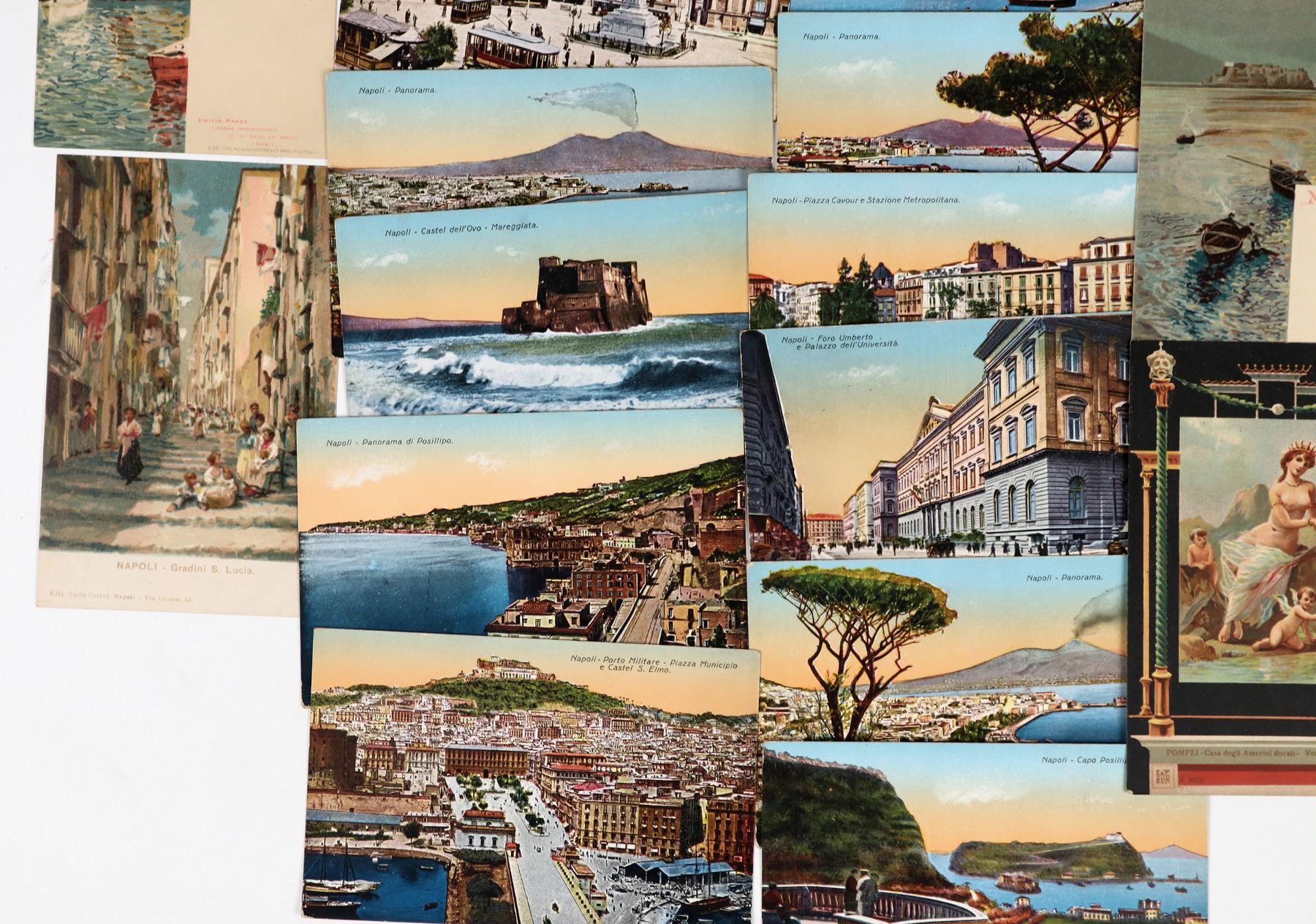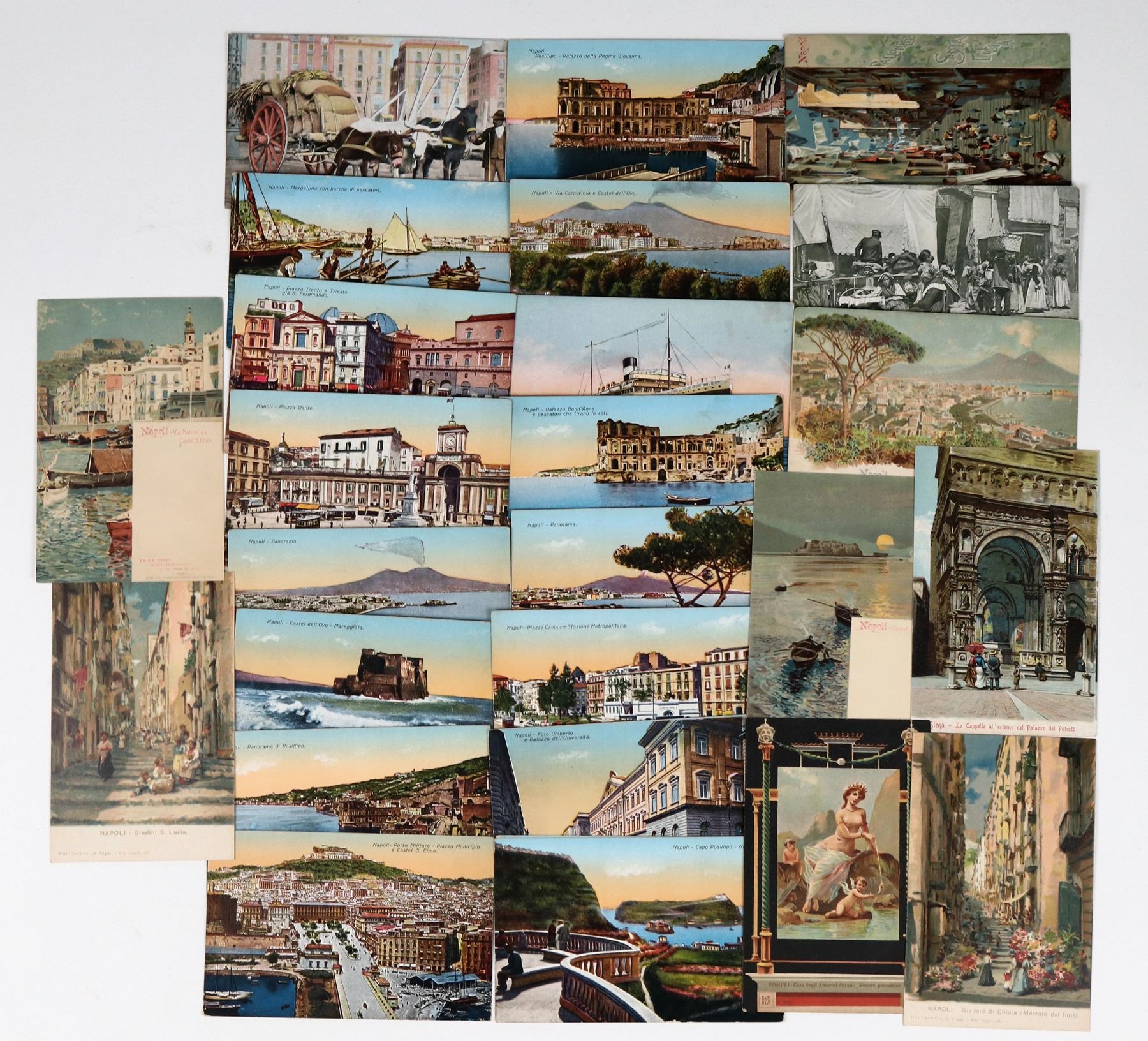 About 20 early Naples, Italy postcards with some chromolitho. Waterfronts, volcano, piazza, art, street scenes etc.