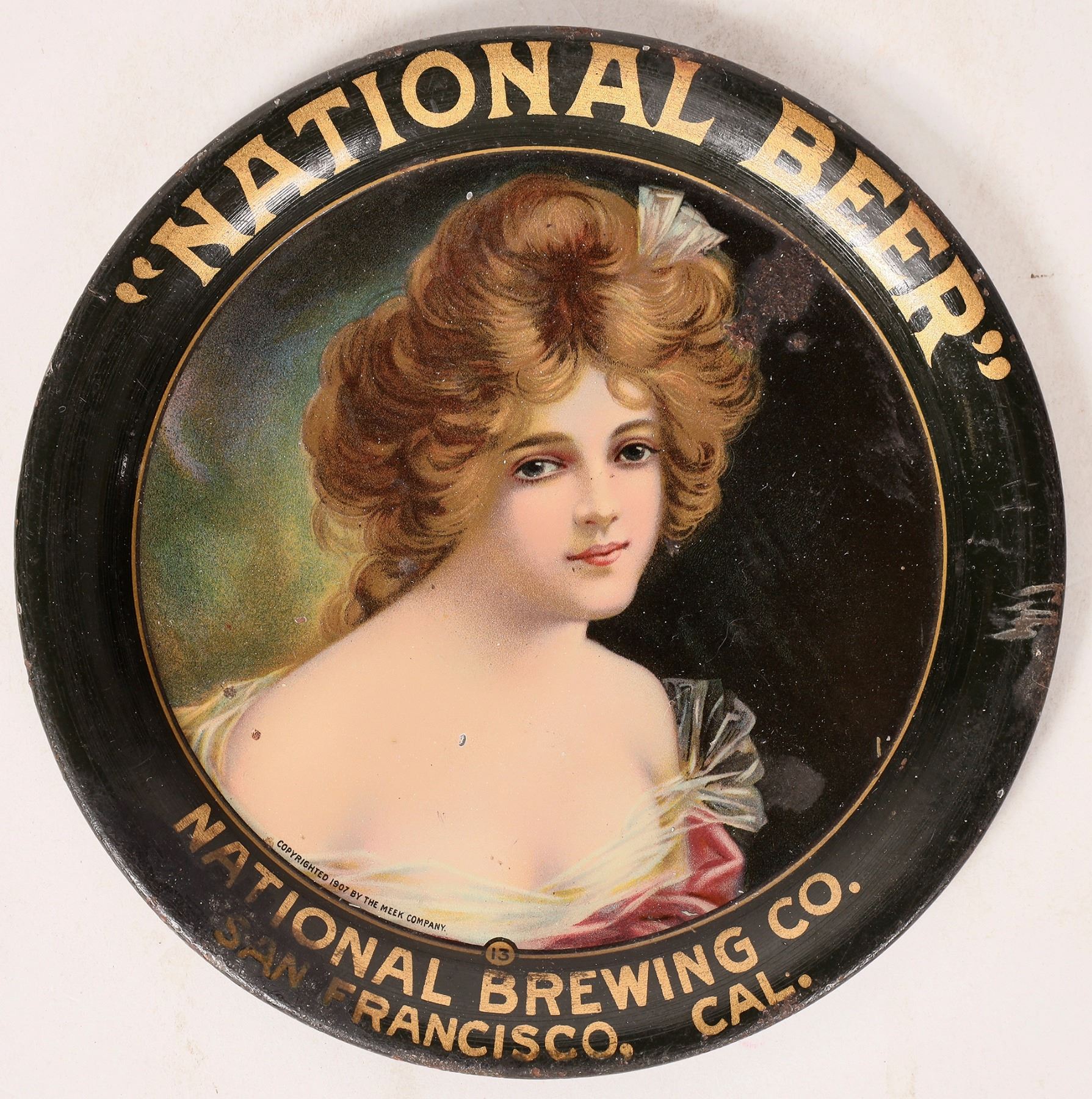 Tip tray 4.5" wide reading National Beer. National Brewing Co. San Francisco, Cal. Small scratch and a tiny rust spot on reverse, but in very nice condition. A beautiful piece. Please see photos for more details. San Francisco California