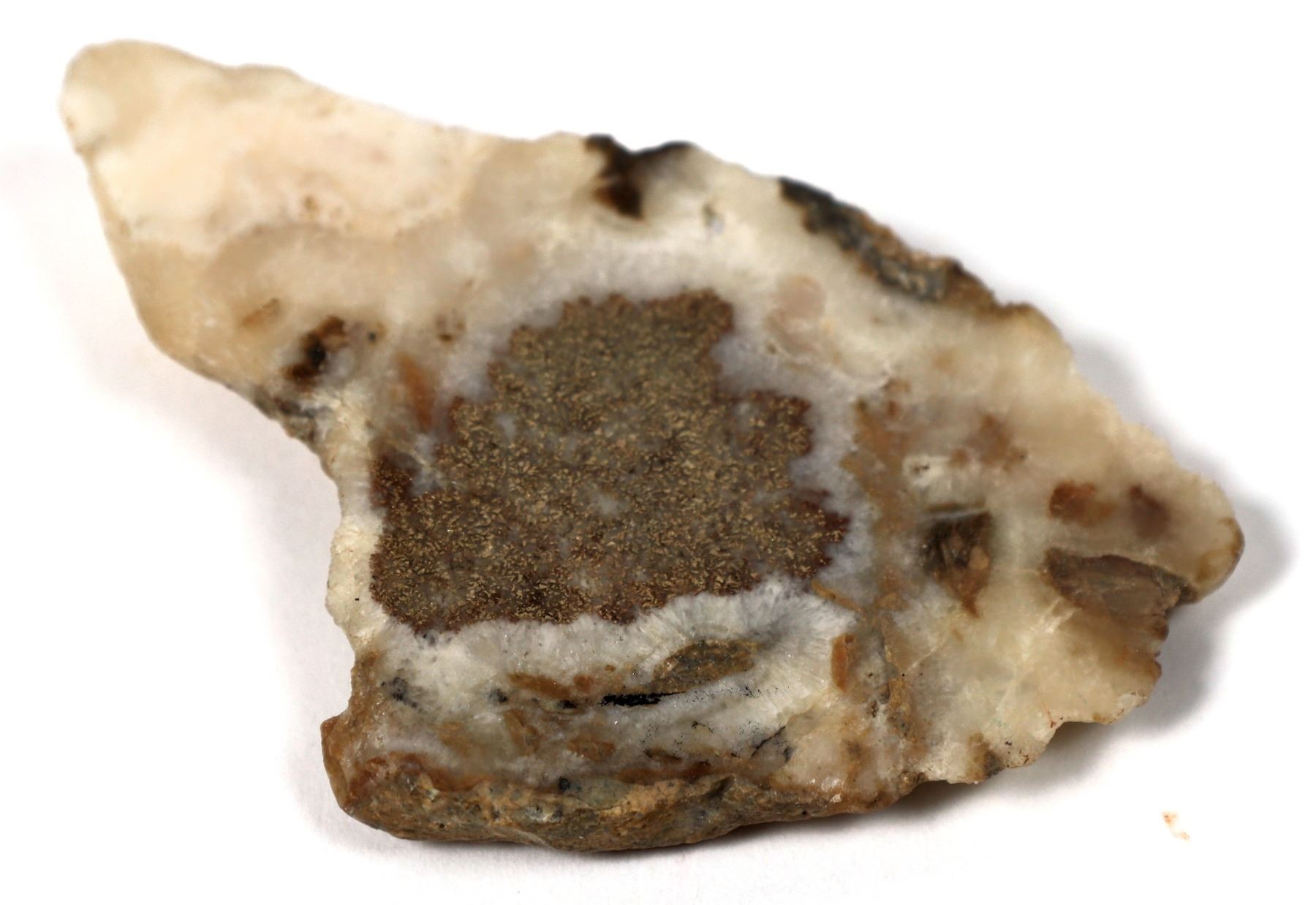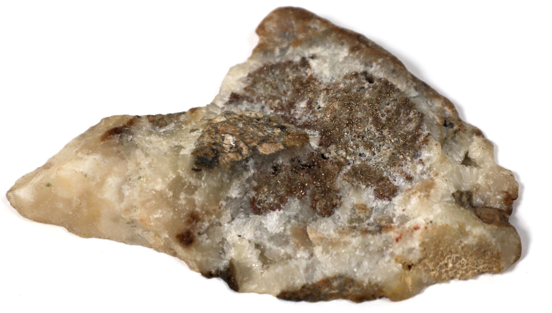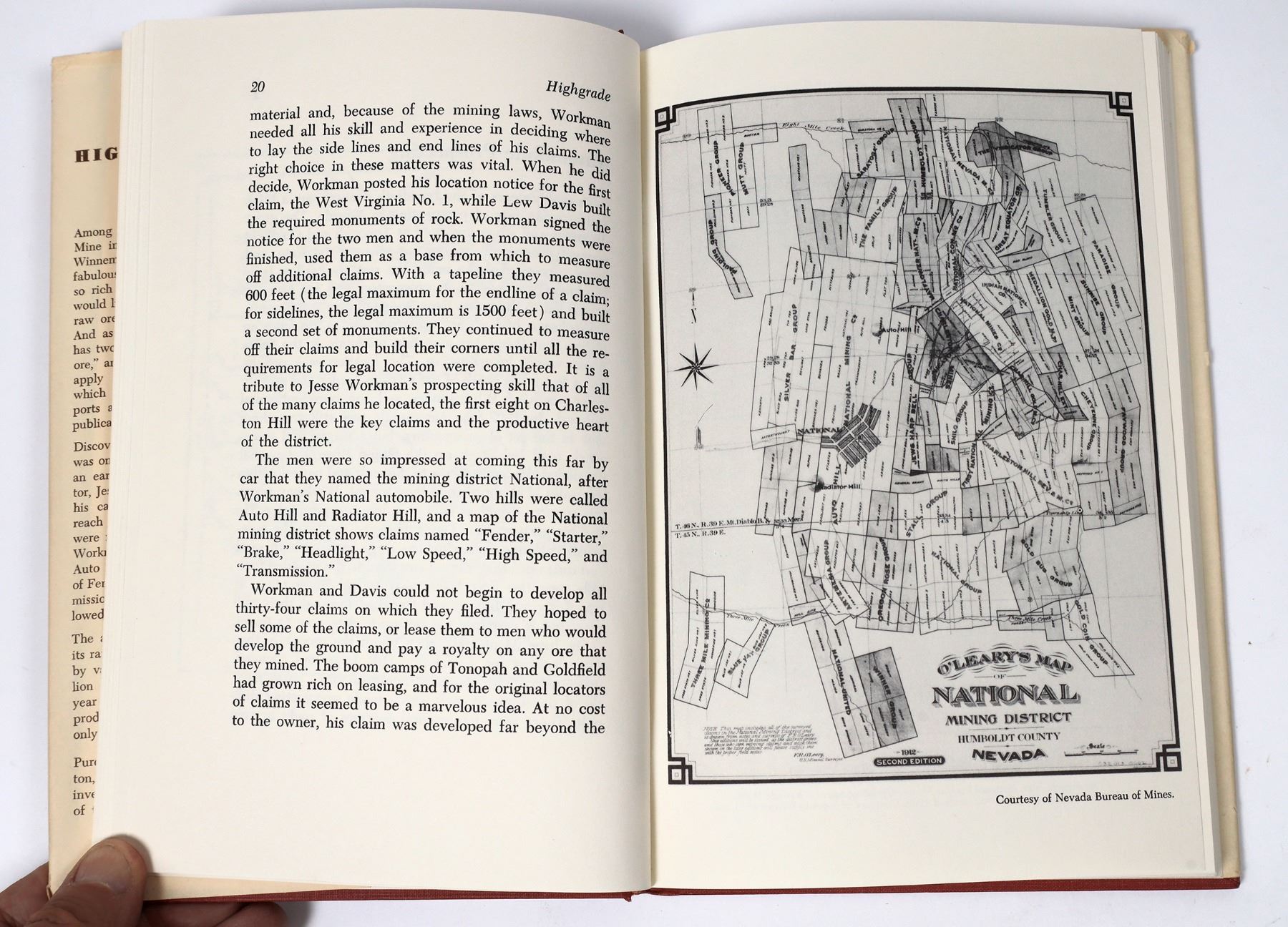 National Mine Native Gold Specimen. 3 x 6 cm, 23g polished cut surface of a single dendrite of electrum (native gold) in quartz. The Stall shaft samples were famous for their high grade gold ores containing these big dendrites. The reference book "National - The Mining Story of National, Nevada," 1981, details stories of this mine and the high grading done by miners. Lot comes with the book, autographed to Don Chaput, important western historian and author. From the Dr. James Saunders Collection.