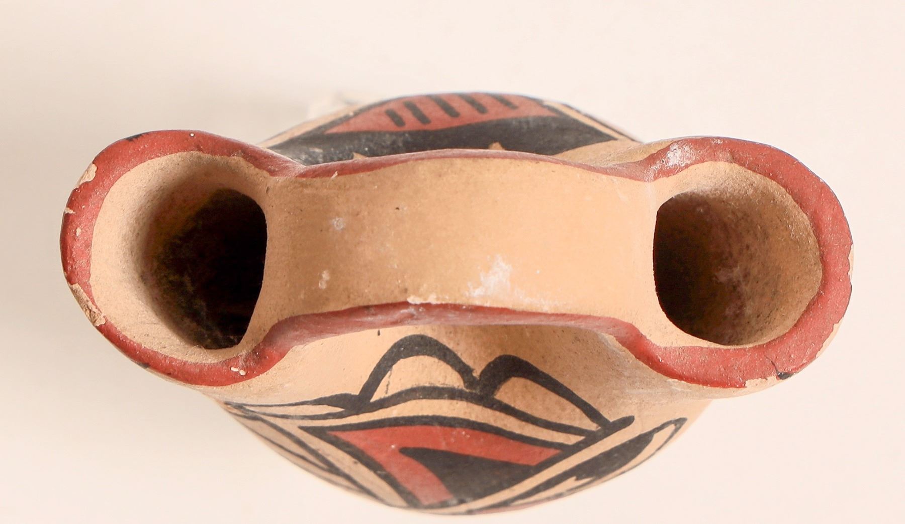 3. small New Mexico Pueblo bud vase, 3.5" tall. some wear along lips. [] [] [] [] []