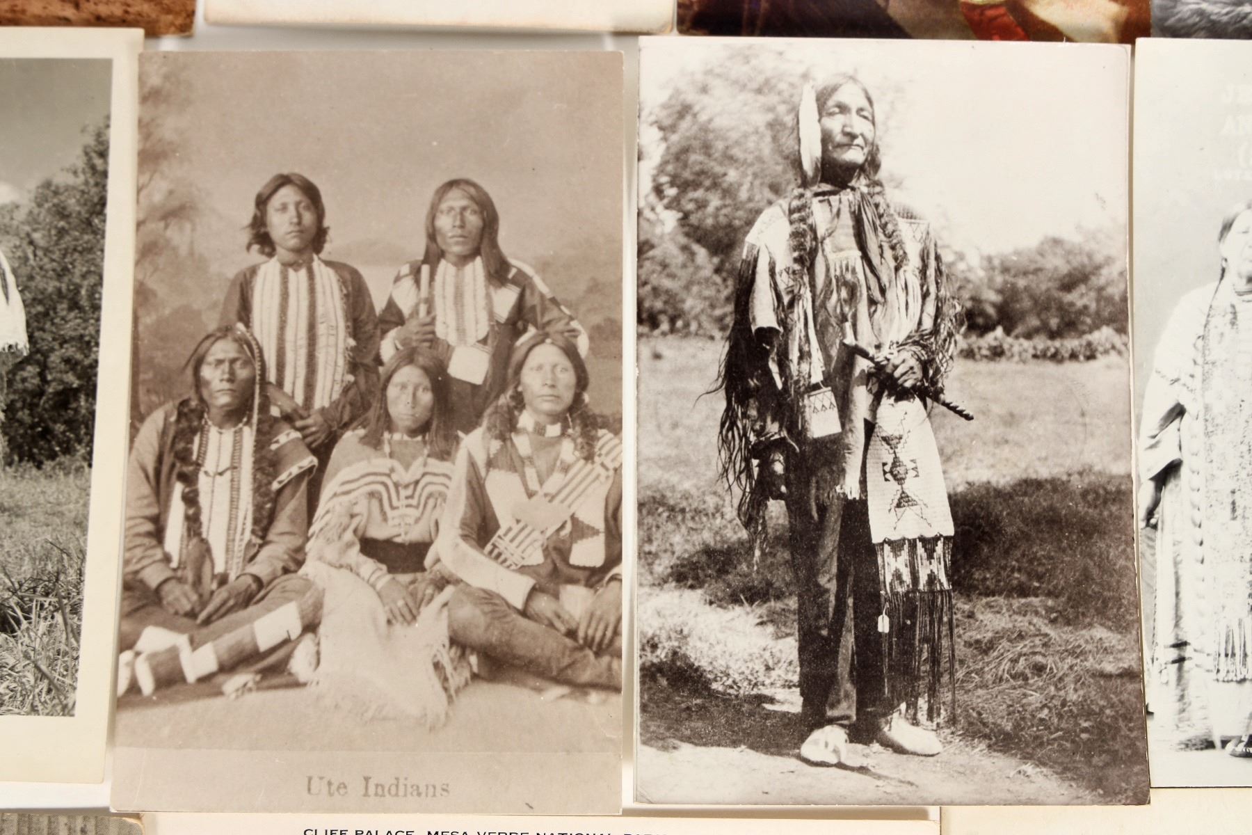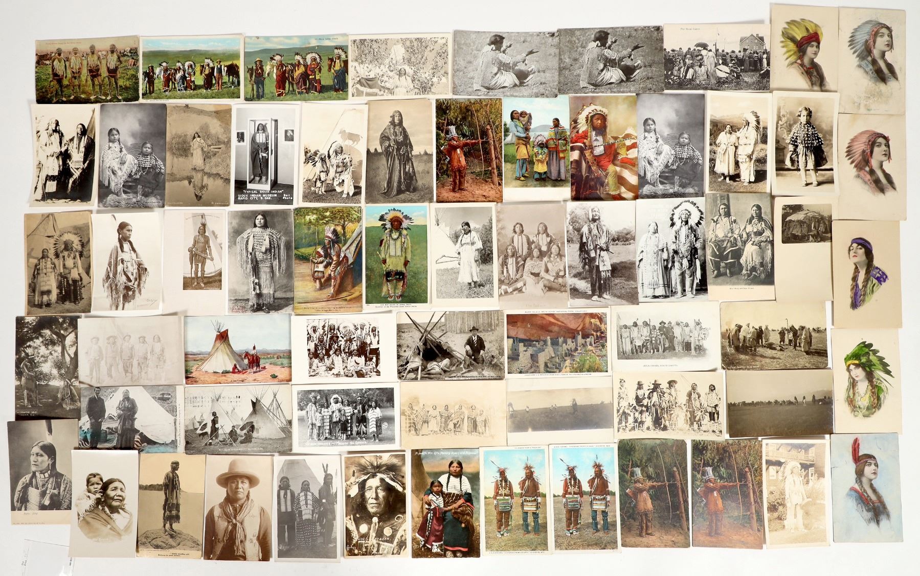 Lot of 60. Mostly Sioux and Ute Indian post cards. Depicting various parts of Indian life, chiefs, braves and families. One PMC . All in very good condition.