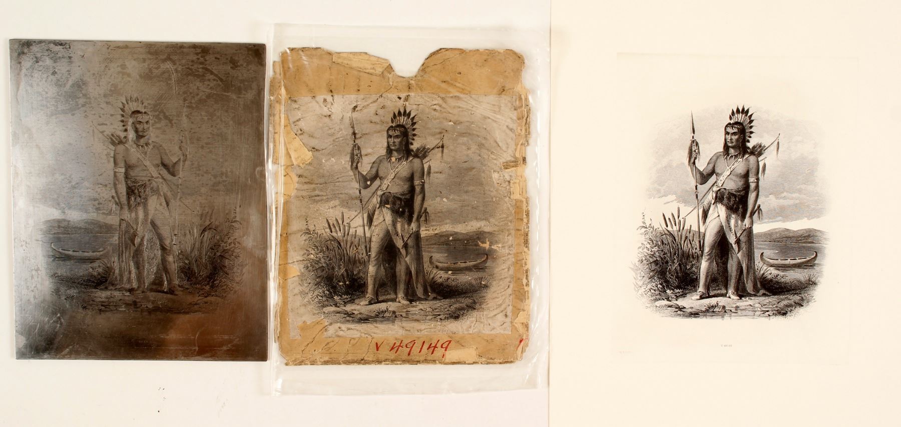 From the archives of The American Bank Note Company comes a printers plate for a native American portrait. An 8 1/2 x 11 inch proof made from the plate is included. Stack's auctioned the ABN's archives in 2008 as part of the Rich Uhrich Collection.