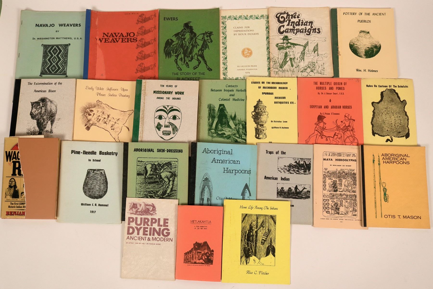 This is a collection of paperback and hard cover books from Maya culture to Northern Plains indians. Most are reproduction reprints but all good quality. About twenty pieces. Please review photos for details.