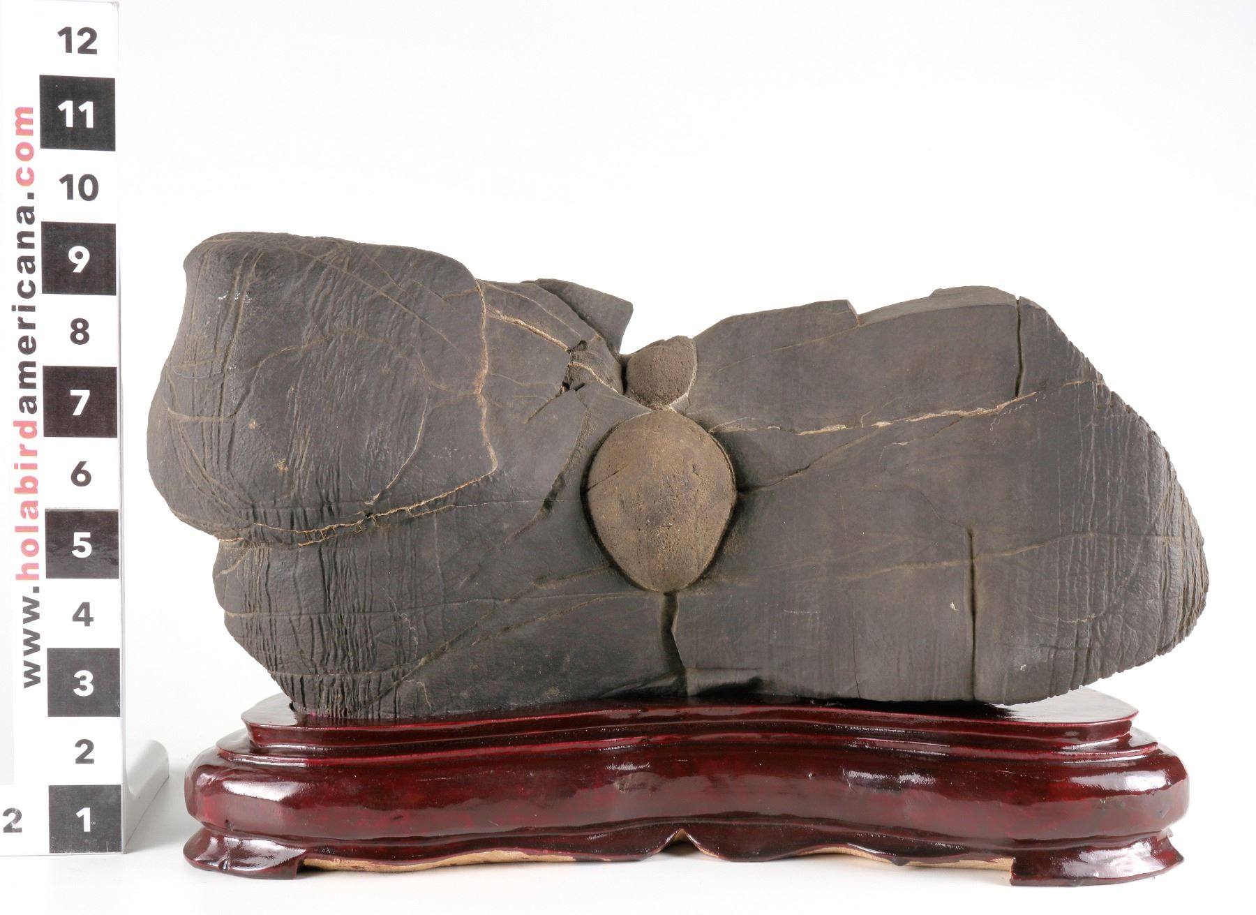 Chinese Viewing Stone rounded river rock w/two nodules. Looks kinda like a walrus. 15x7x9'. Custom wood stand. China Chunlin Zhu Collection