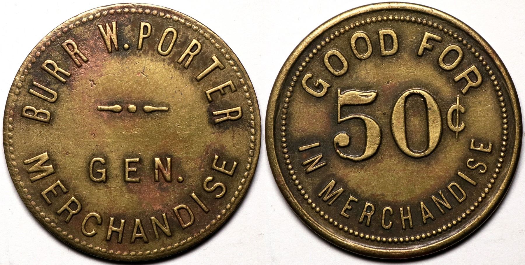 Burr W. Porter/ Gen. / Merchandise // Good For / 50c / In Merchandise. 27mm. R9