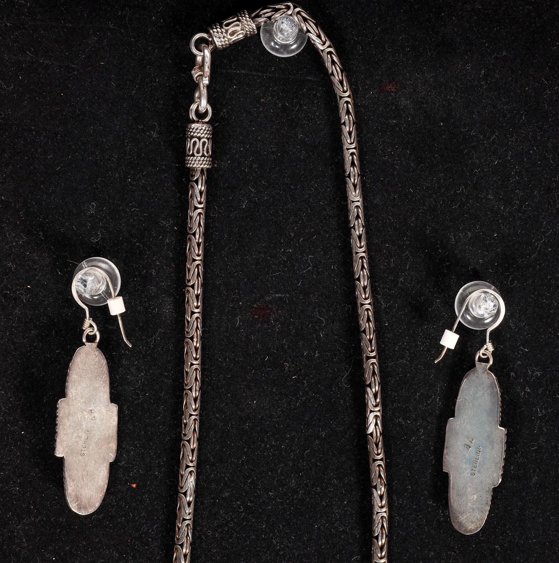 This is a 2 piece Navajo made onyx necklace and earring set on a sterling silver chain, the hallmark on this set is AM , this is a beautifully matched set, the necklace hangs at about 12 Ωî.
