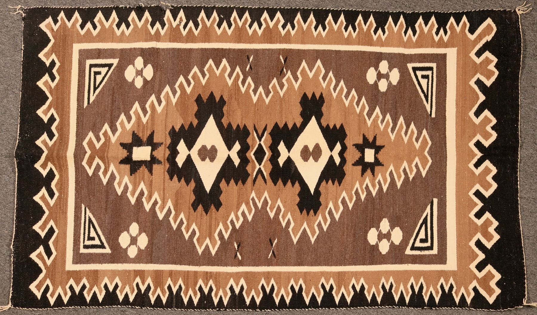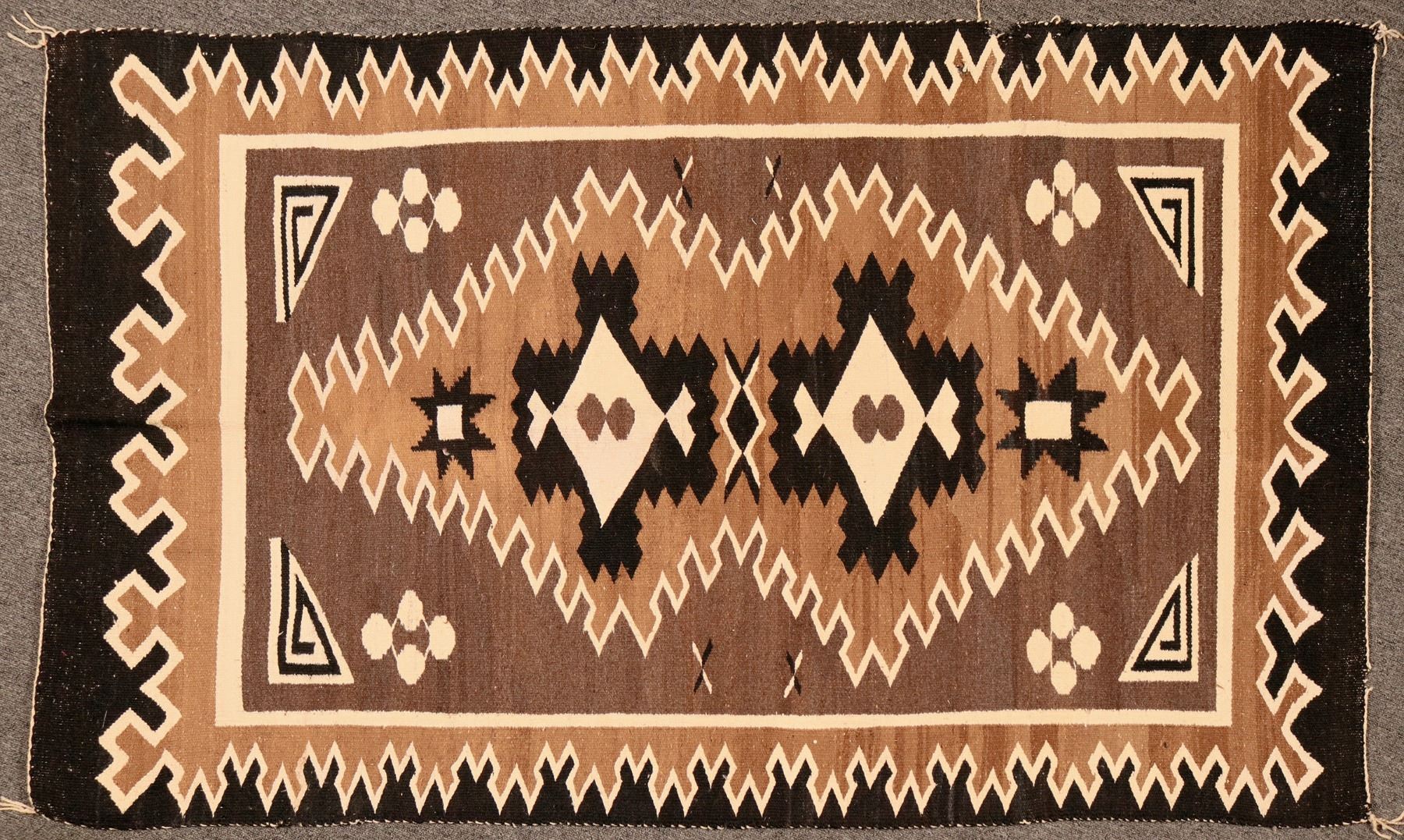 Unusual design on this Navajo rug, 61" x 38". Very good condition.