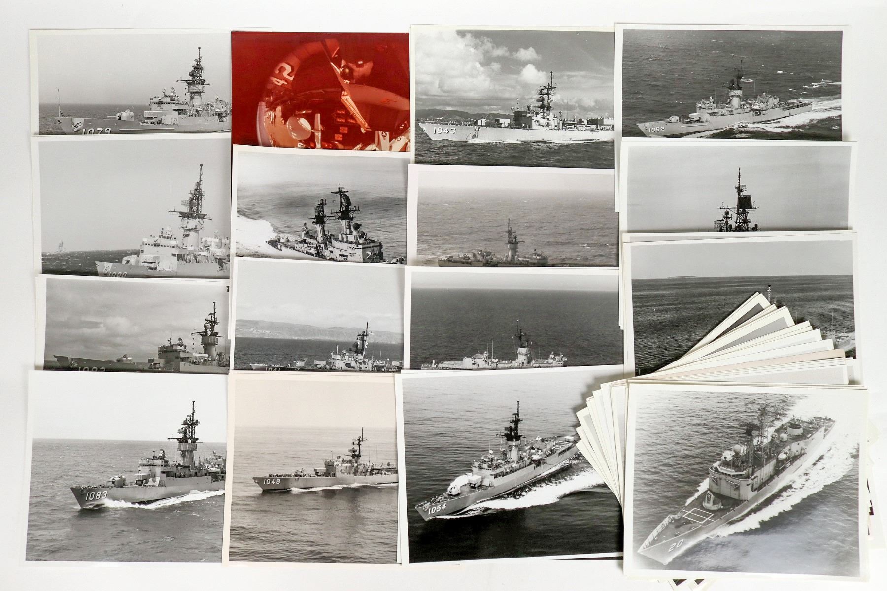 An assortment of 8"x 10" black & white de-classified photos of U.S. Navy ships of various years & classes. There are carriers, missile cruisers, frigates & destroyers. All photos in nice condition. Please see photos for more details. [