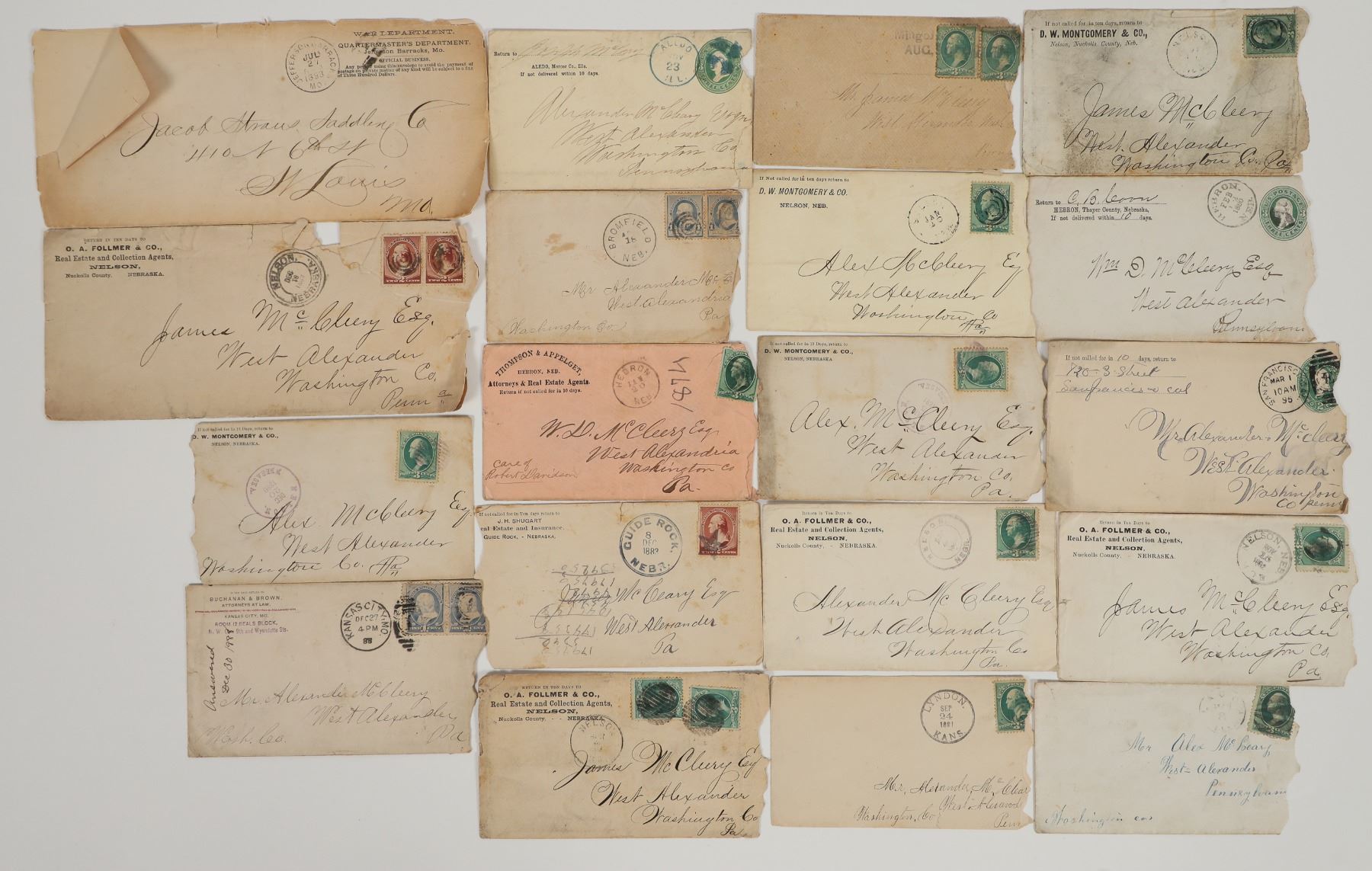 lot of 18. Postmark I.E; Aledo Ill. Bromfield, Neb. Hedron Neb. , Guide Rock, Mingoj, San Francisco Calif., Kansas City MO., Lyndon Kansas. VG or better cond.