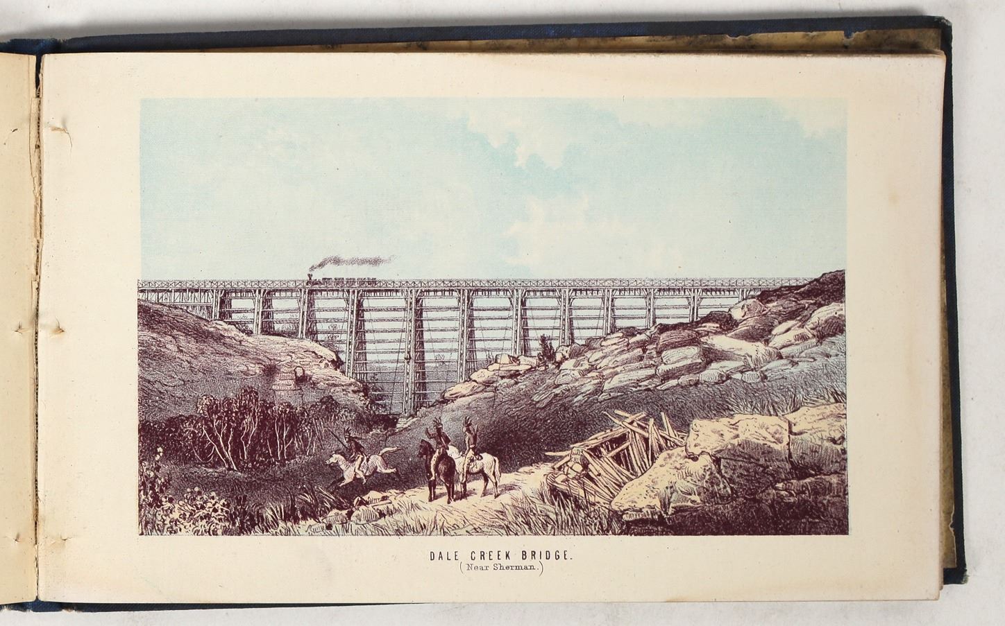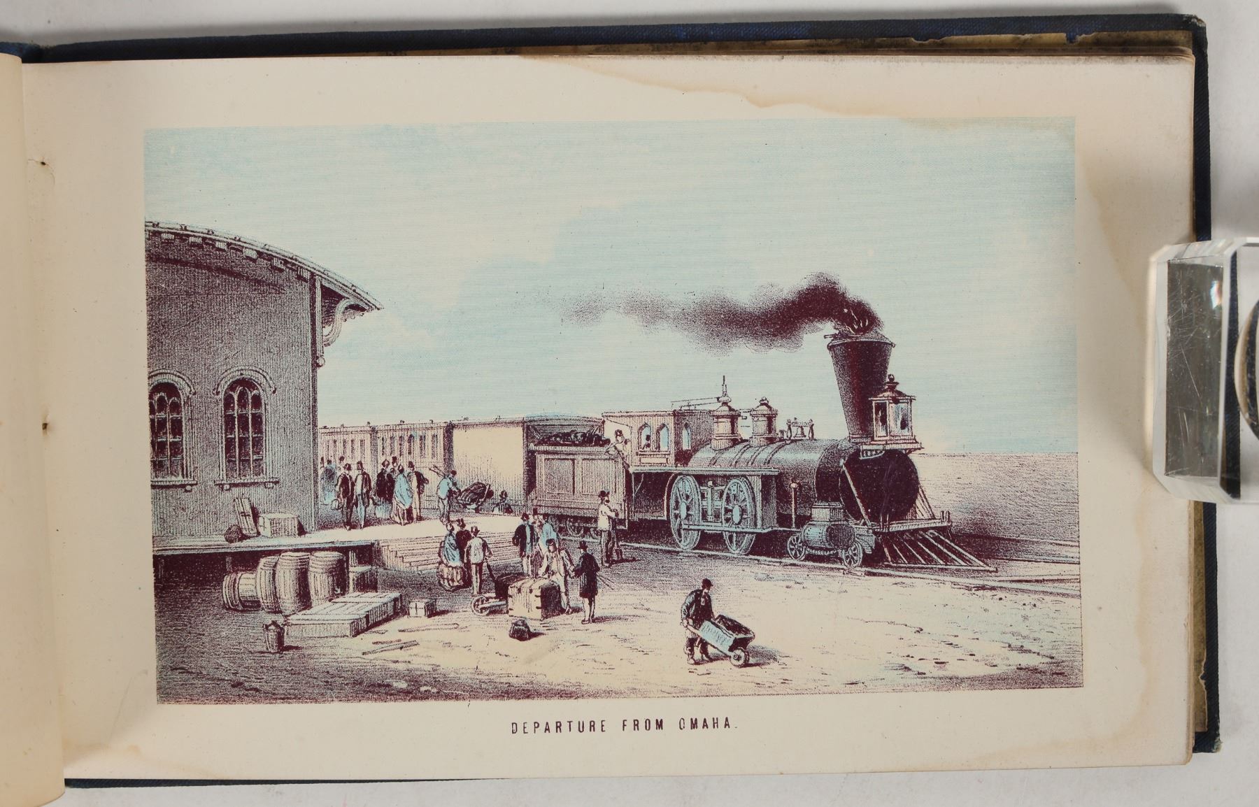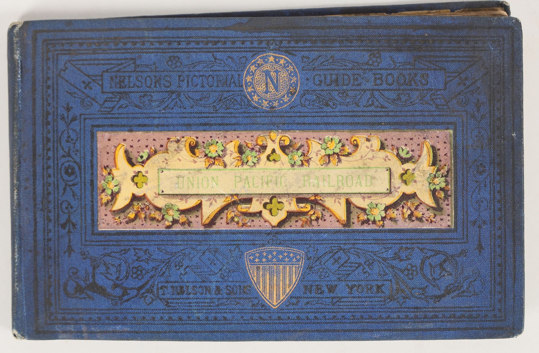 Nelson's Pictorial Union Pacific RR Trip Across North American Continent From Omaha to Ogden, c1874, 45 pages written trip information with eleven artist renditions of the trip. Hardbound and in excellent cond. 4.5x6.5"