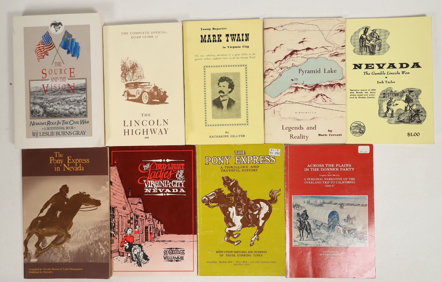Group of 9 books on various Nevada historical topics, most published c. 1950-c.1985. All in good condition; see photo for details.