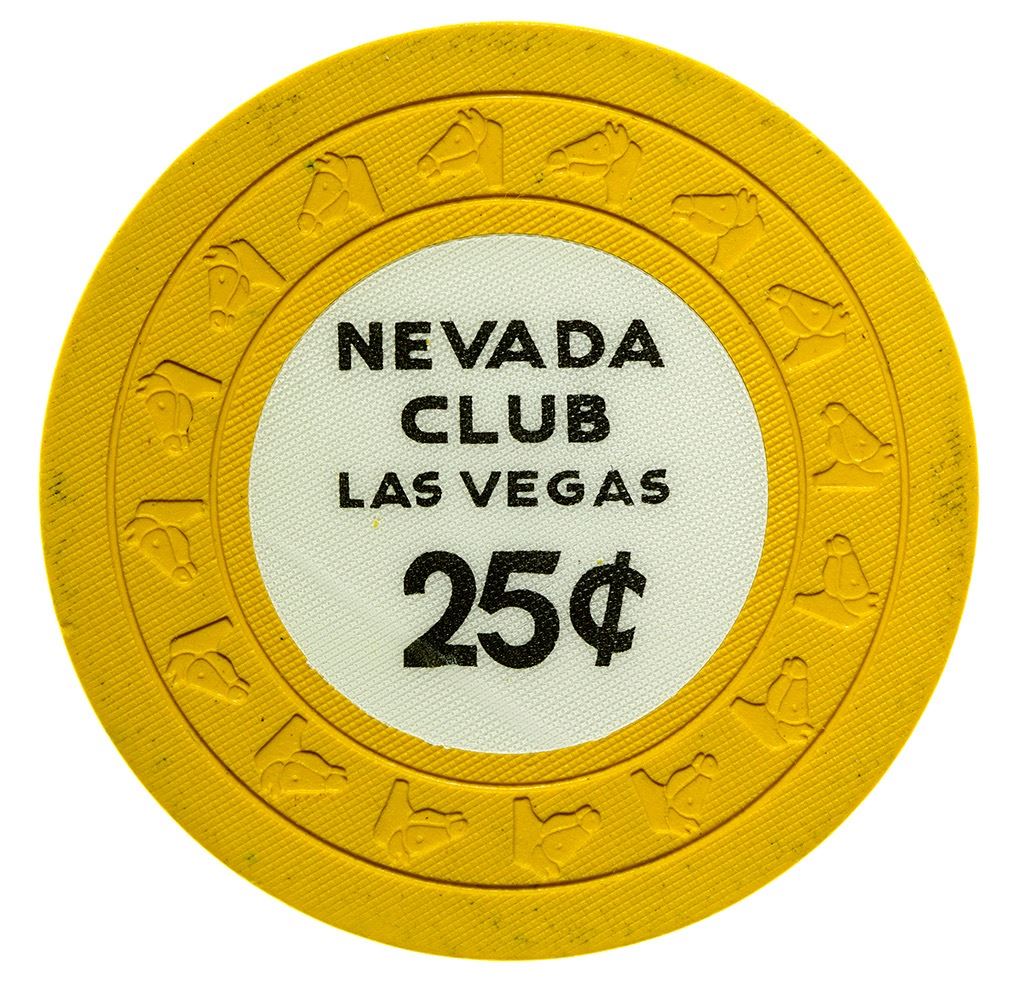 Rare yellow 25 cent chip from the Nevada Club. There was "Diamond Jim's" Nevada Club, and the "Nashville" Nevada Club. HWAC# 51316 Date: Location: Las Vegas, Nevada